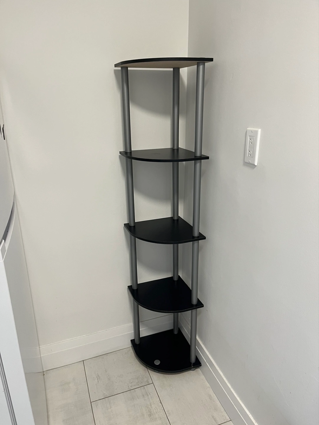 Corner shelf unit, 5-tier, black and silver