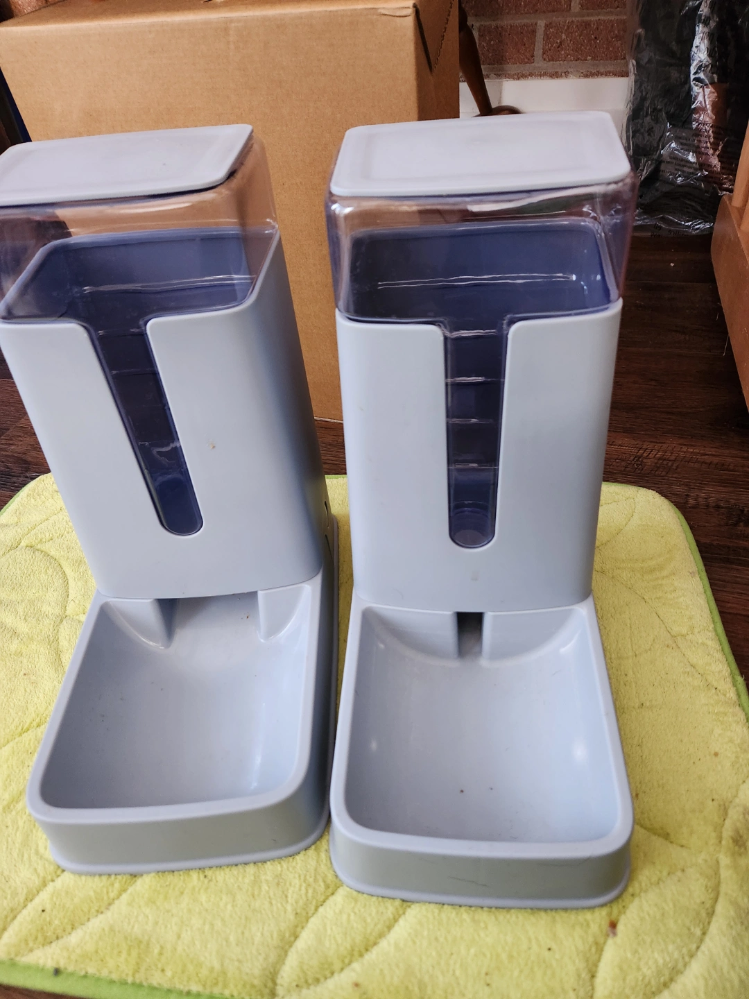 Buy & SellTwo Pet Food DispensersTwo Pet Food Dispensers$10Pair of grey plastic automatic pet feeders. Features clear tops and separate bowls. Good for dry food.ConditionLike newWHERE TO MEETCheck LocationView MapSELLERJillBirchmount433 reviews1 chats·0 favorites·9 viewsSEND CHAT TO SELLERHi Jill! I’m interested in your listing.Hi Jill! I’m interested in your listing.Get the Karrot app to chatSign In to chat