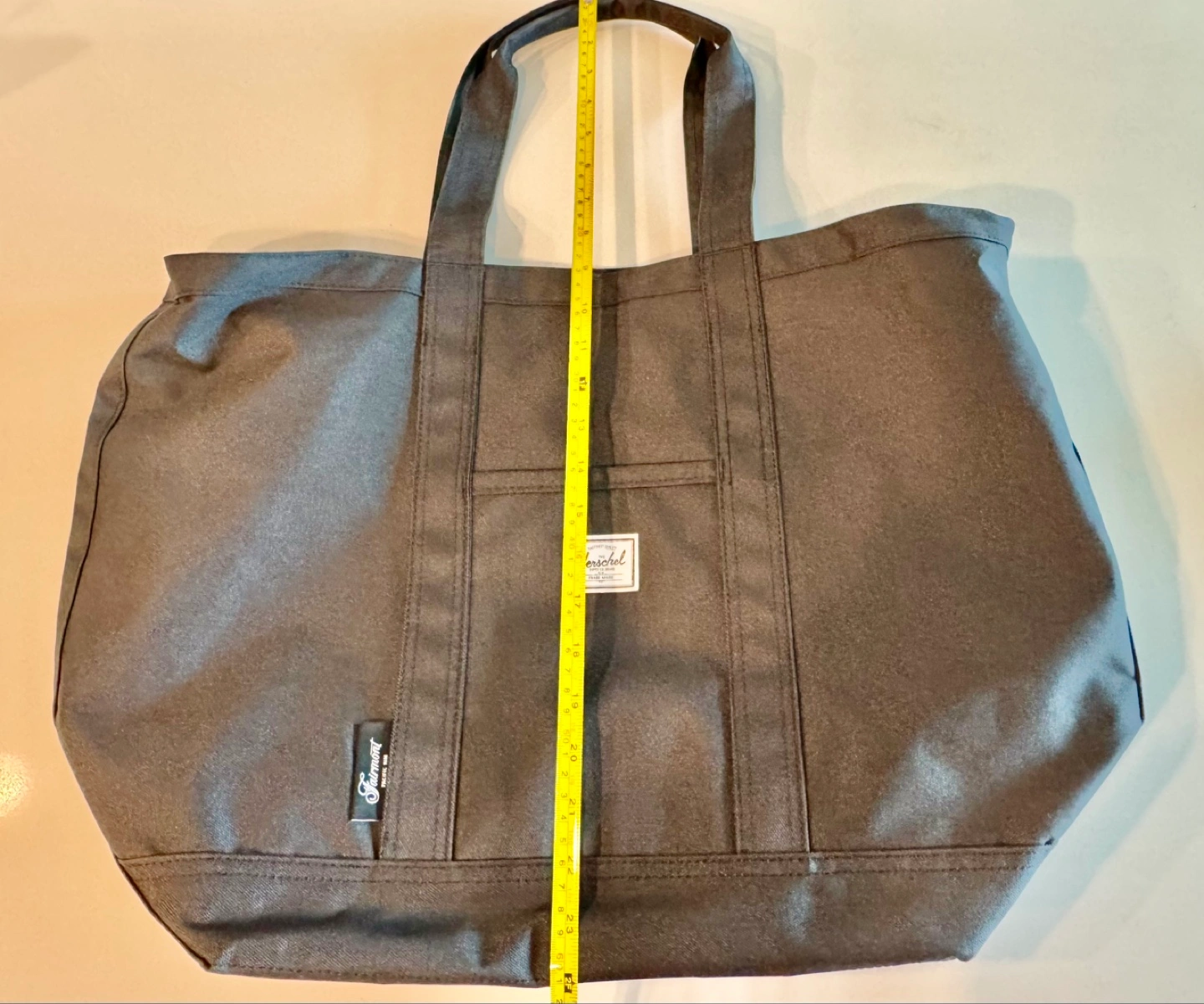 Stylish and versatile black tote bag by Herschel Supply Company X Fairmont. Perfect for everyday use with durable construction and ample space, also suitable for traveling.