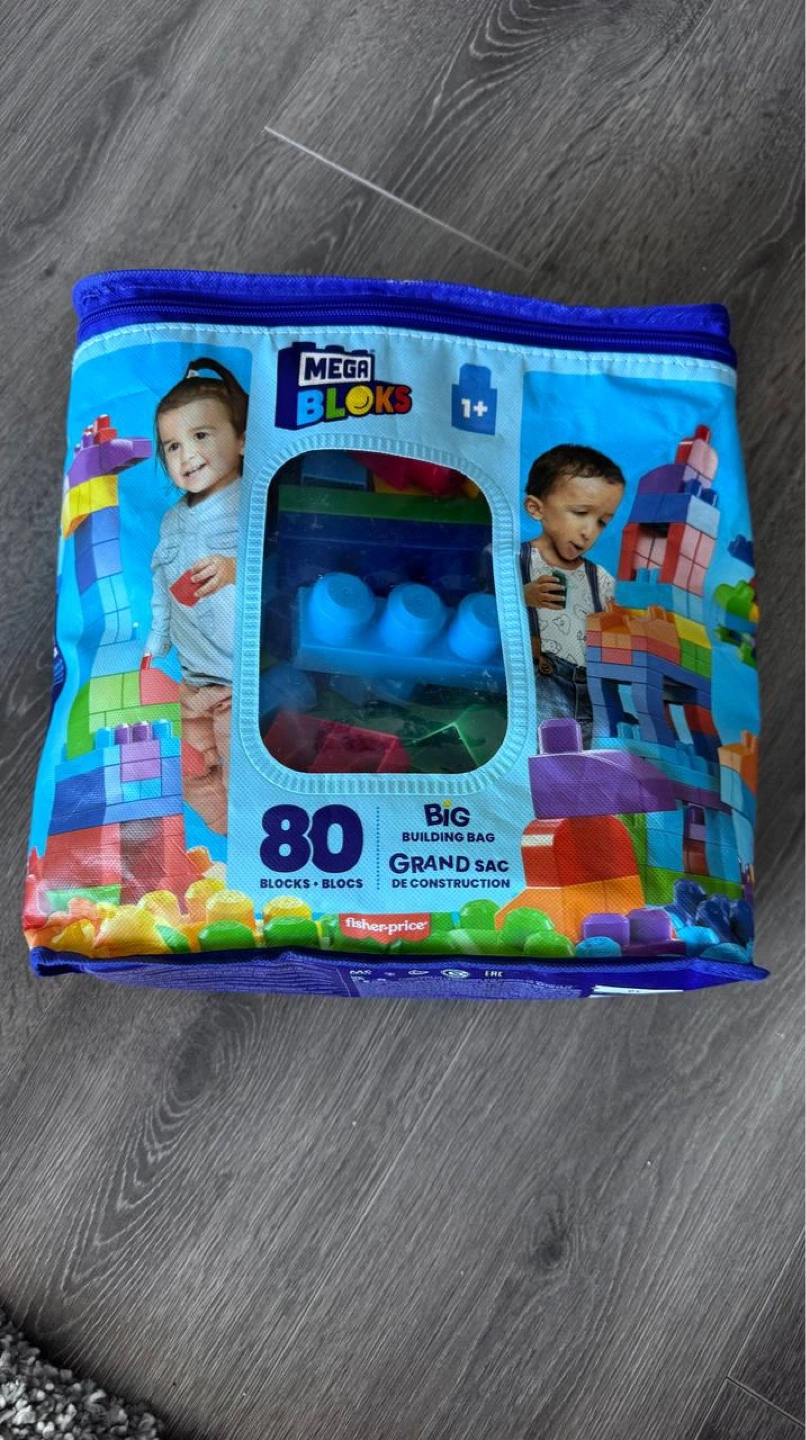 For sale: Mega Bloks (80 pieces) building set in a convenient storage bag. • Age: 1 year and up. • Number of pieces: 80 bright plastic blocks in various colors and shapes, perfect for little builders. • Features: Lightweight, safe, and easy to connect. • Packaging: Durable bag with a zipper, making it easy to store and transport. An ideal toy for developing motor skills, imagination, and creativity. Excellent condition!