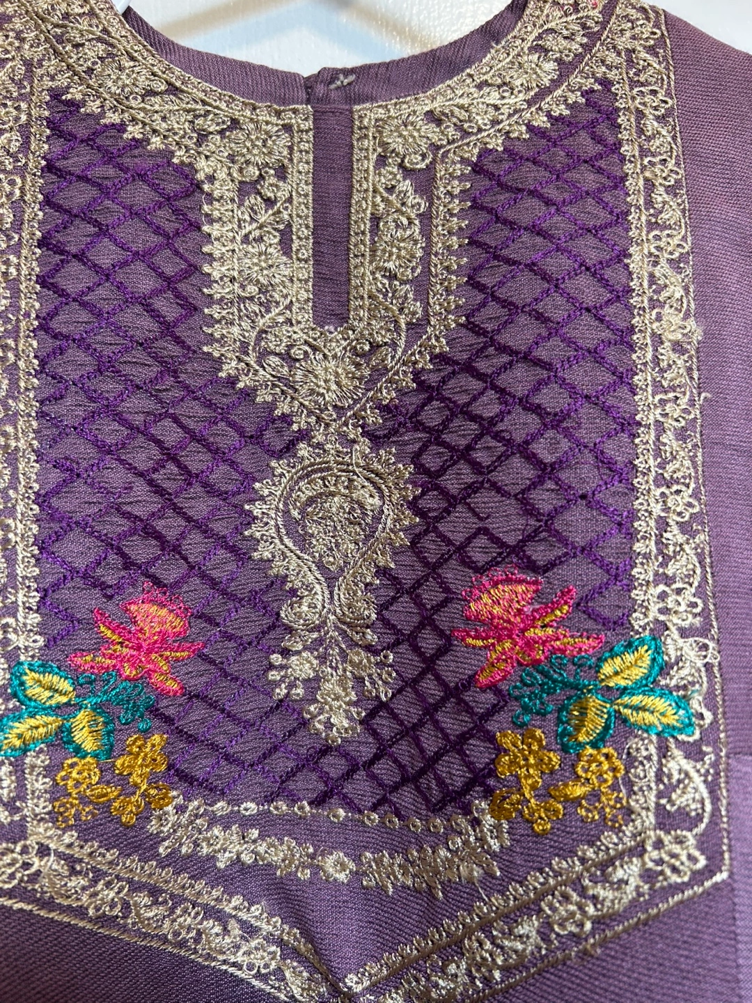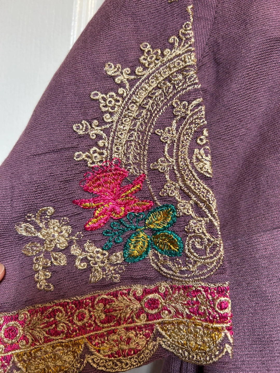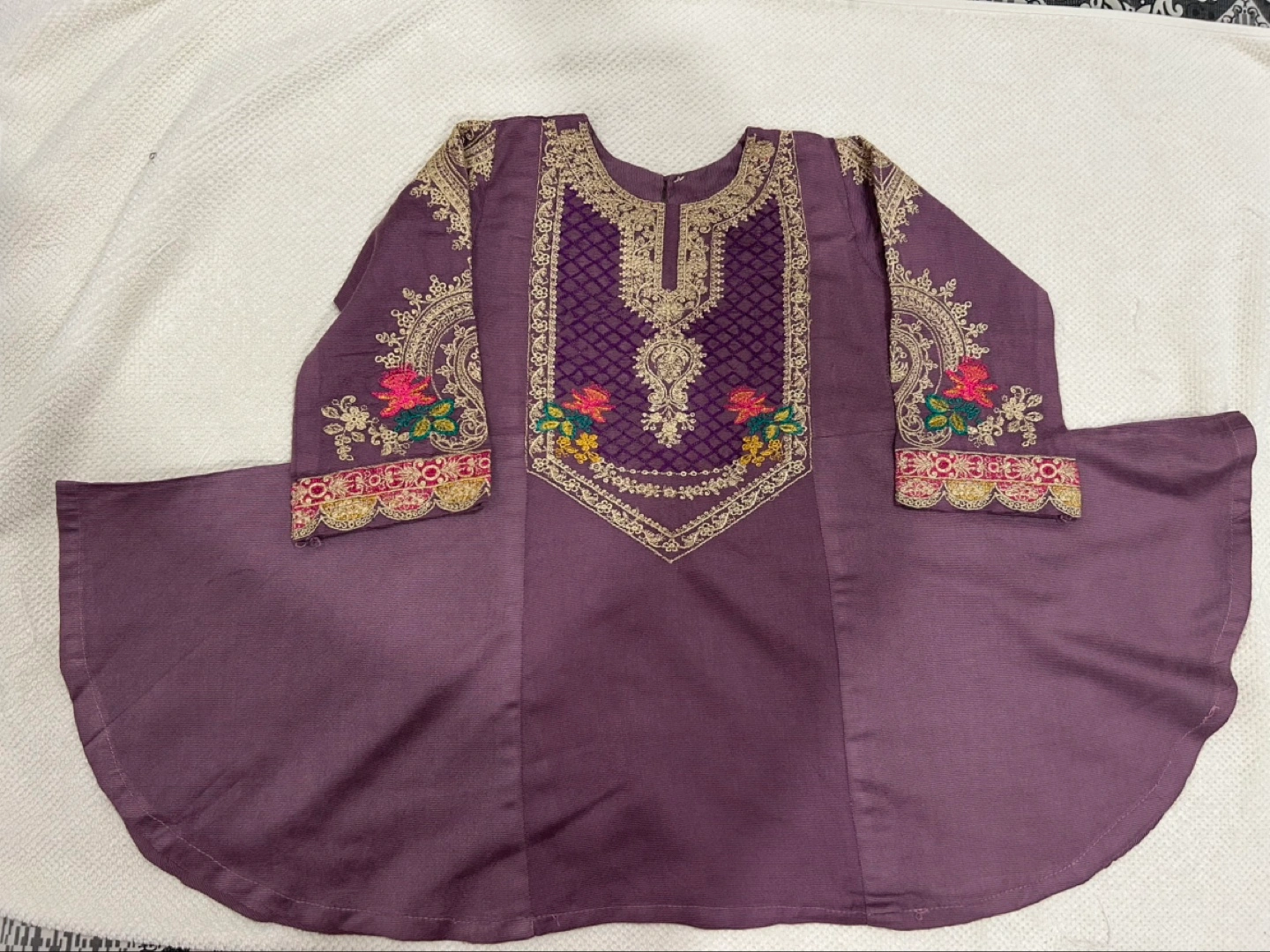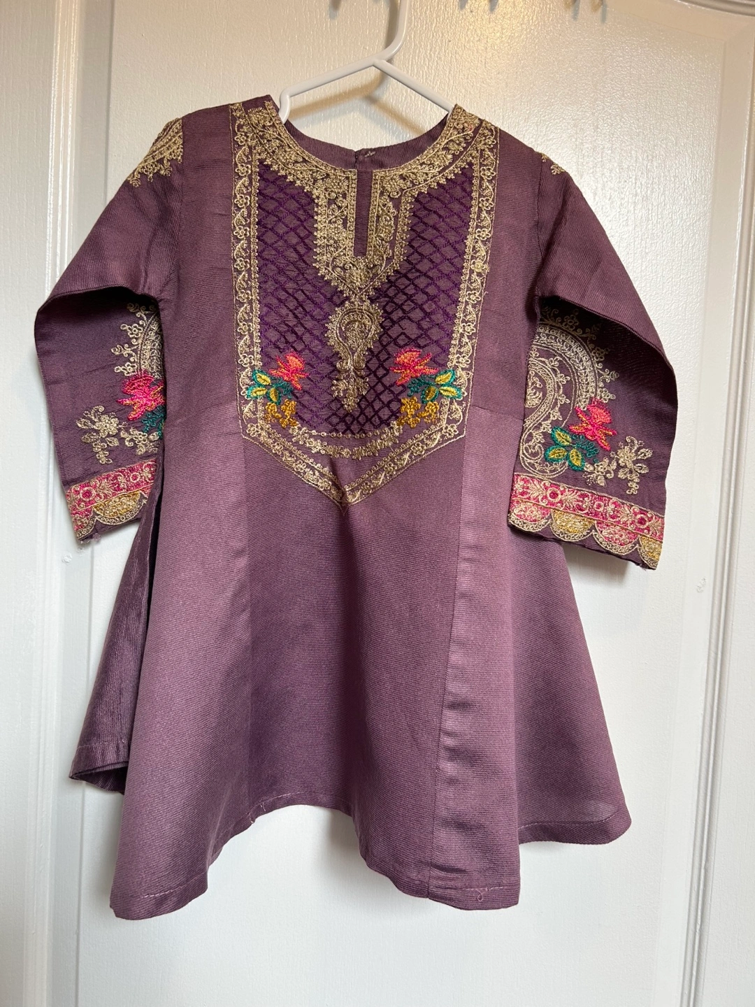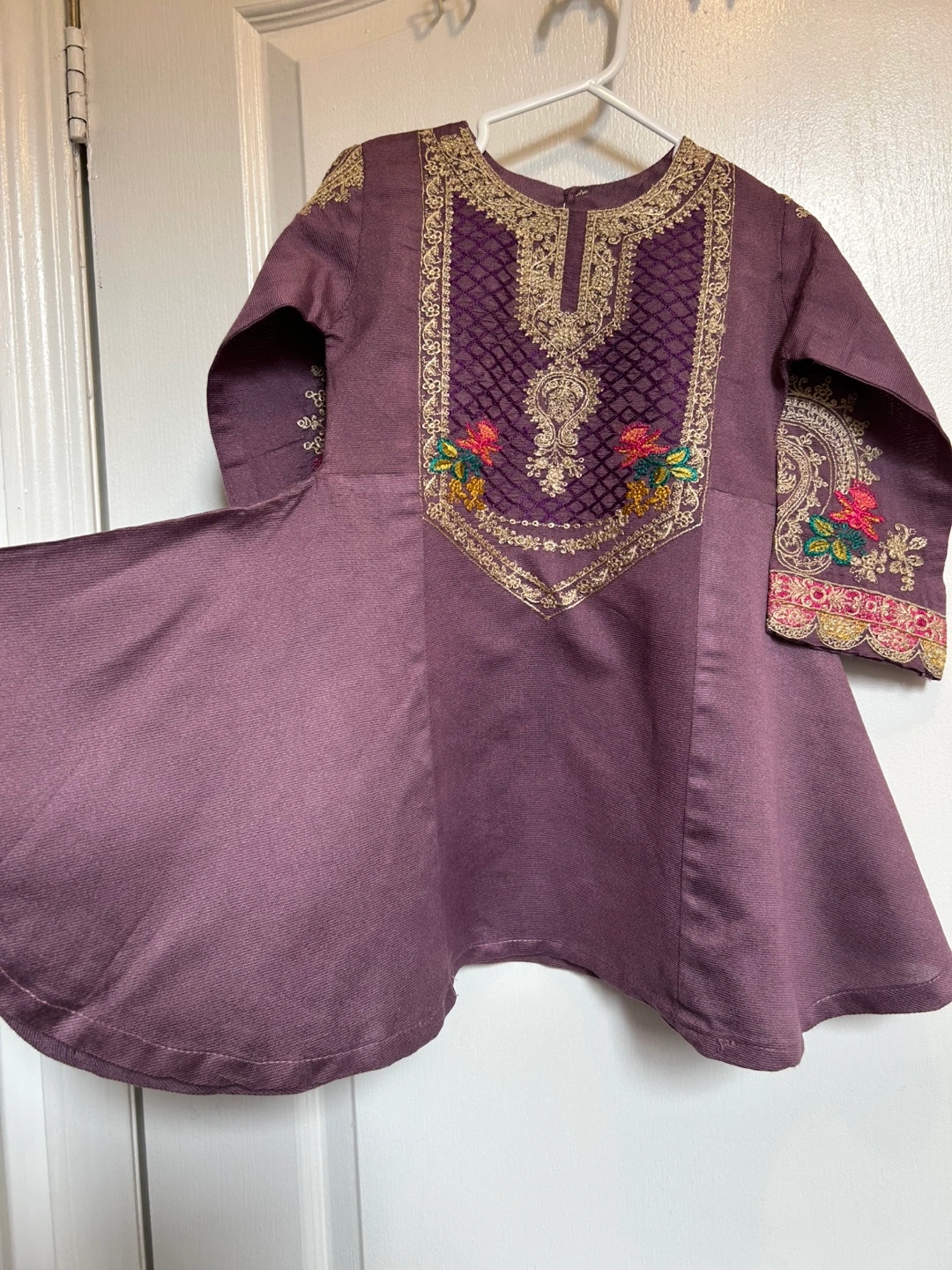 111Beautiful girls' Purple colour flared dress with Intricate embroidery. Full sleeves. Suitable for special occasions. Pick up Markham