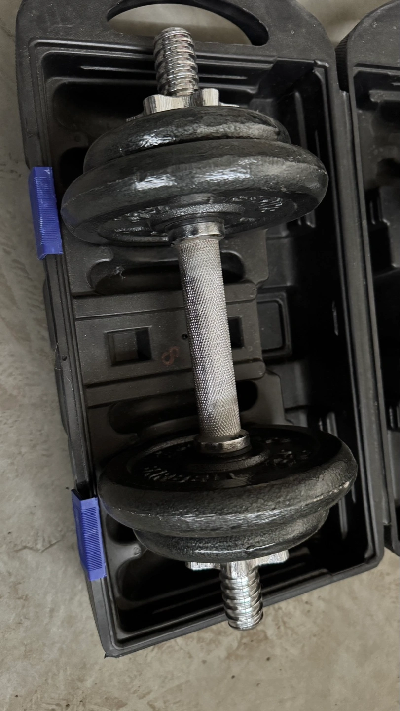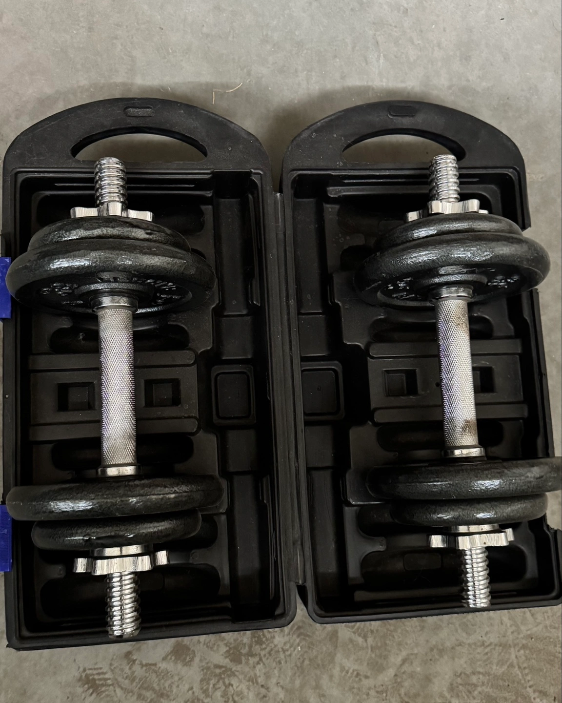 Buy & SellPair of Adjustable 25lb each Dumbbells with CasePair of Adjustable 25lb each Dumbbells with Case$50Two adjustable dumbbells. 25lb Each dumbbell includes multiple weight plates. Stored in a plastic carrying case. Great for home workouts.WHERE TO MEETSeton Grove SoutheastView MapSELLERverifiedJrNortheast Calgary1274 reviews2 chats·2 favorites·45 viewsSEND CHAT TO SELLERHi Jr! I’m interested in your listing.Hi Jr! I’m interested in your listing.Get the Karrot app to chatSign In to chat