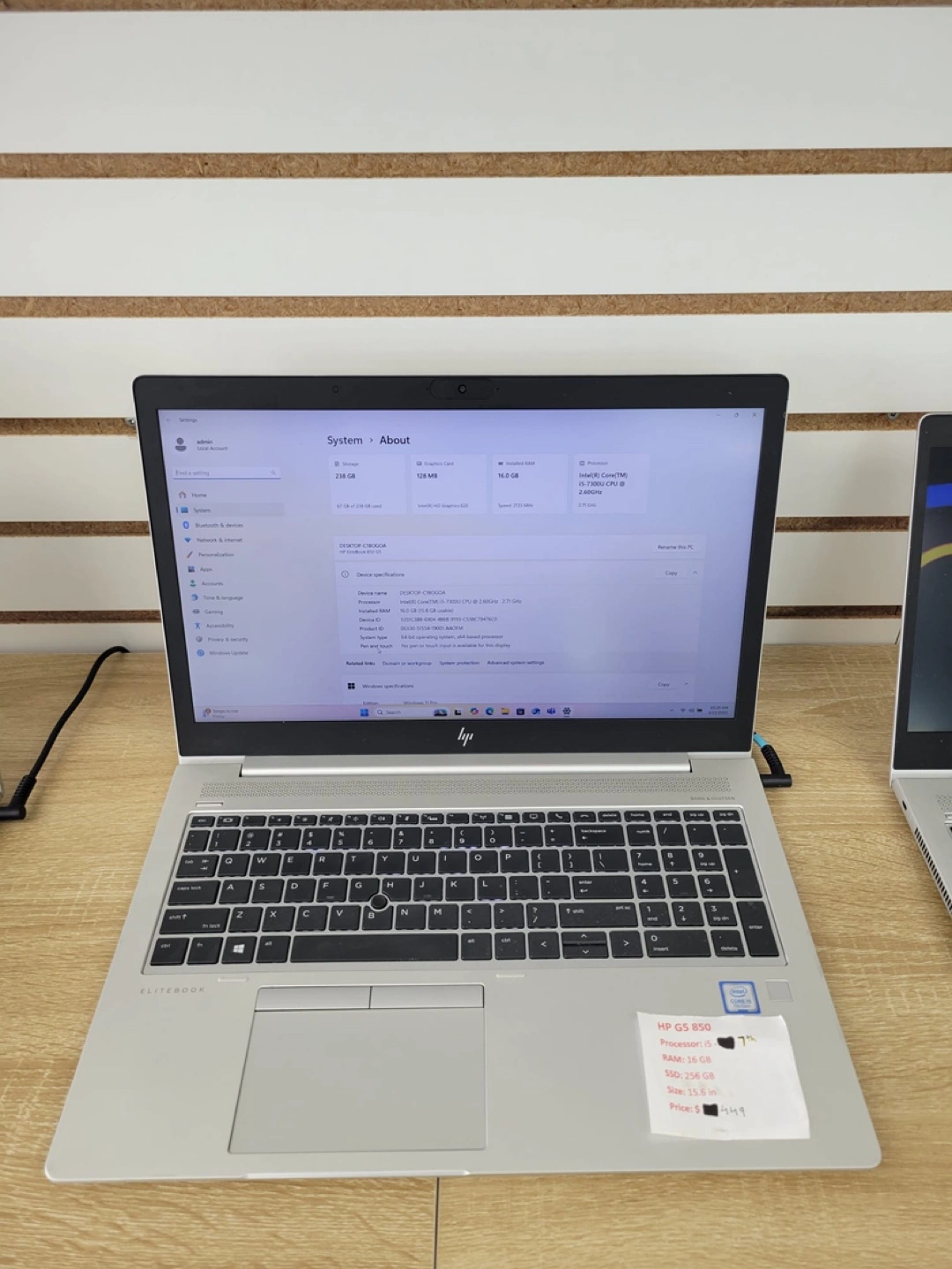 81Silver HP Elitebook 850 G5 laptop. Intel Core i5 processor. 16 GB RAM. 256 GB SSD. Windows 11 Pro.