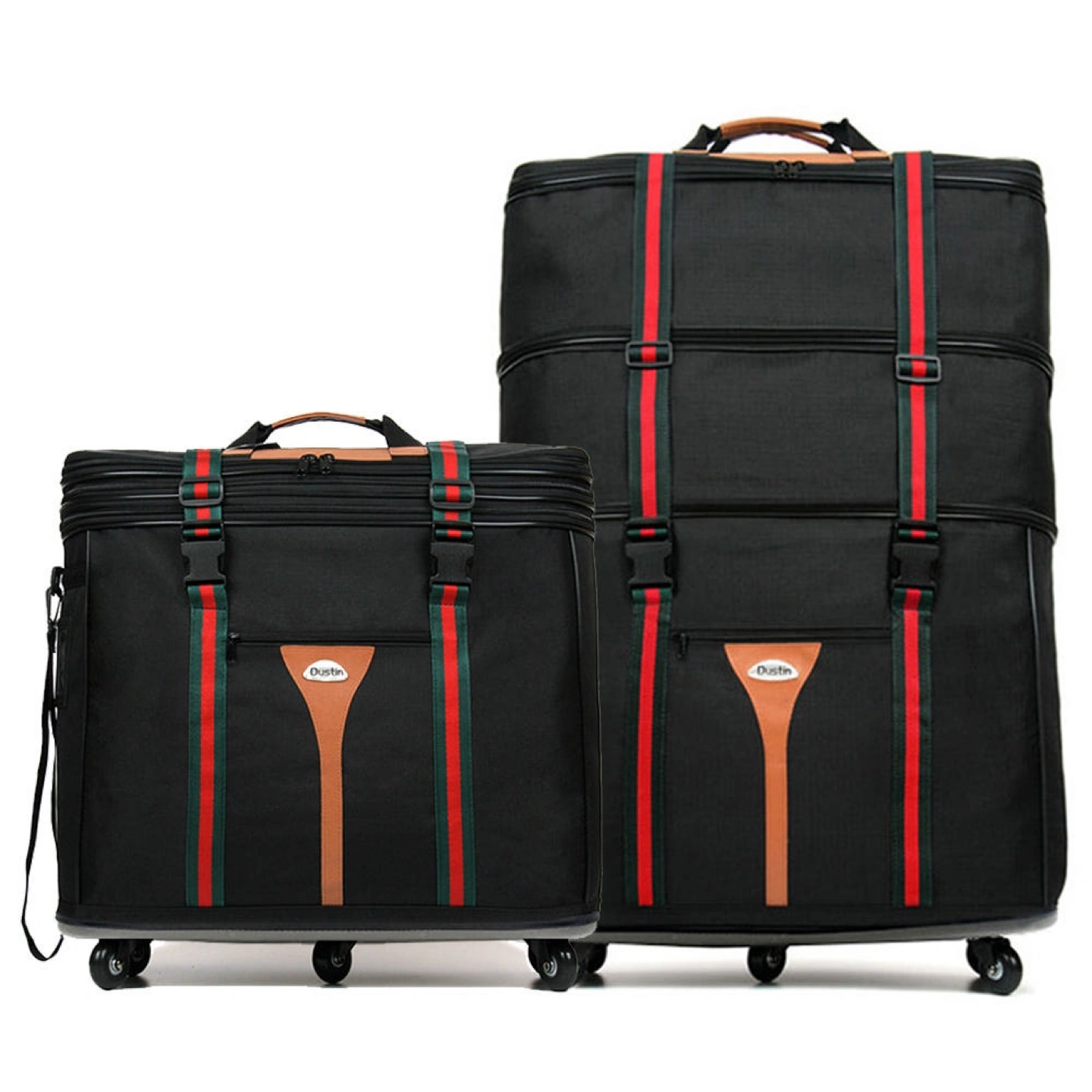 10two wheeled luggage. Black with red and green accents. Features multiple compartments and a top handle.
