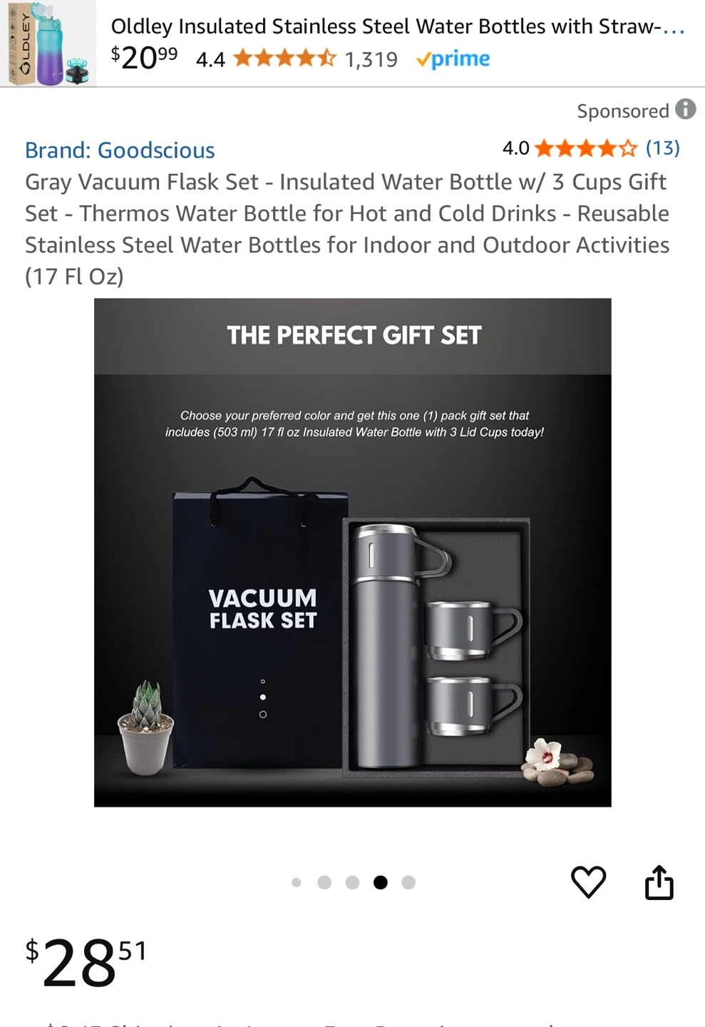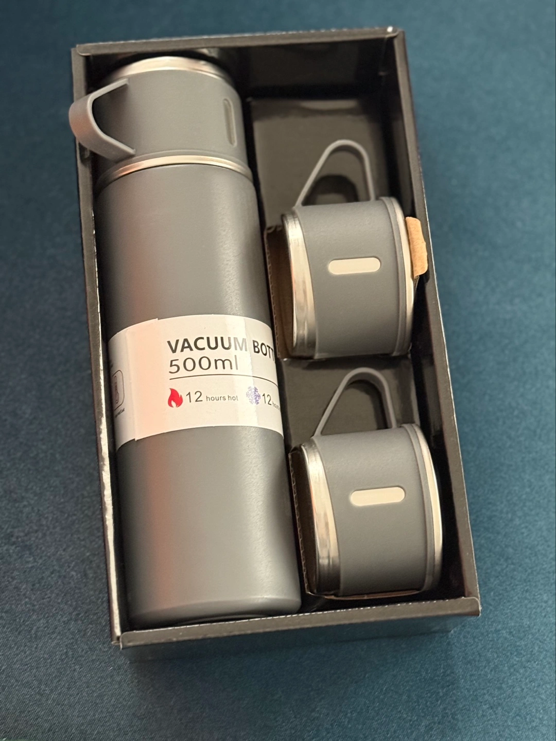 Gray Vacuum Flask Set w/ 3 Cups Gift Set Thermos Water Bottle for Hot and Cold Drinks - Reusable Stainless Steel Water Bottles (cash only) p/up: Airdrie SW