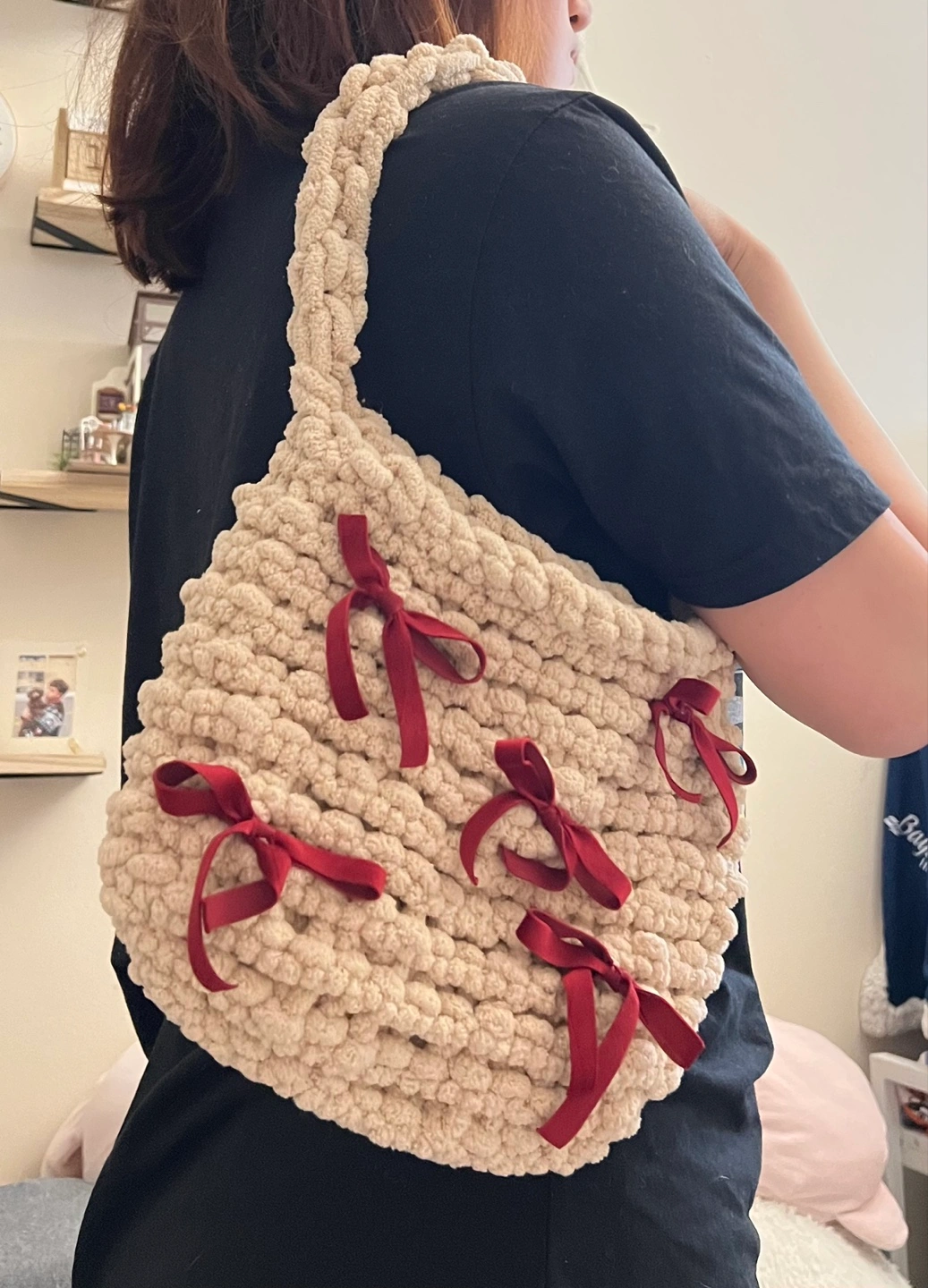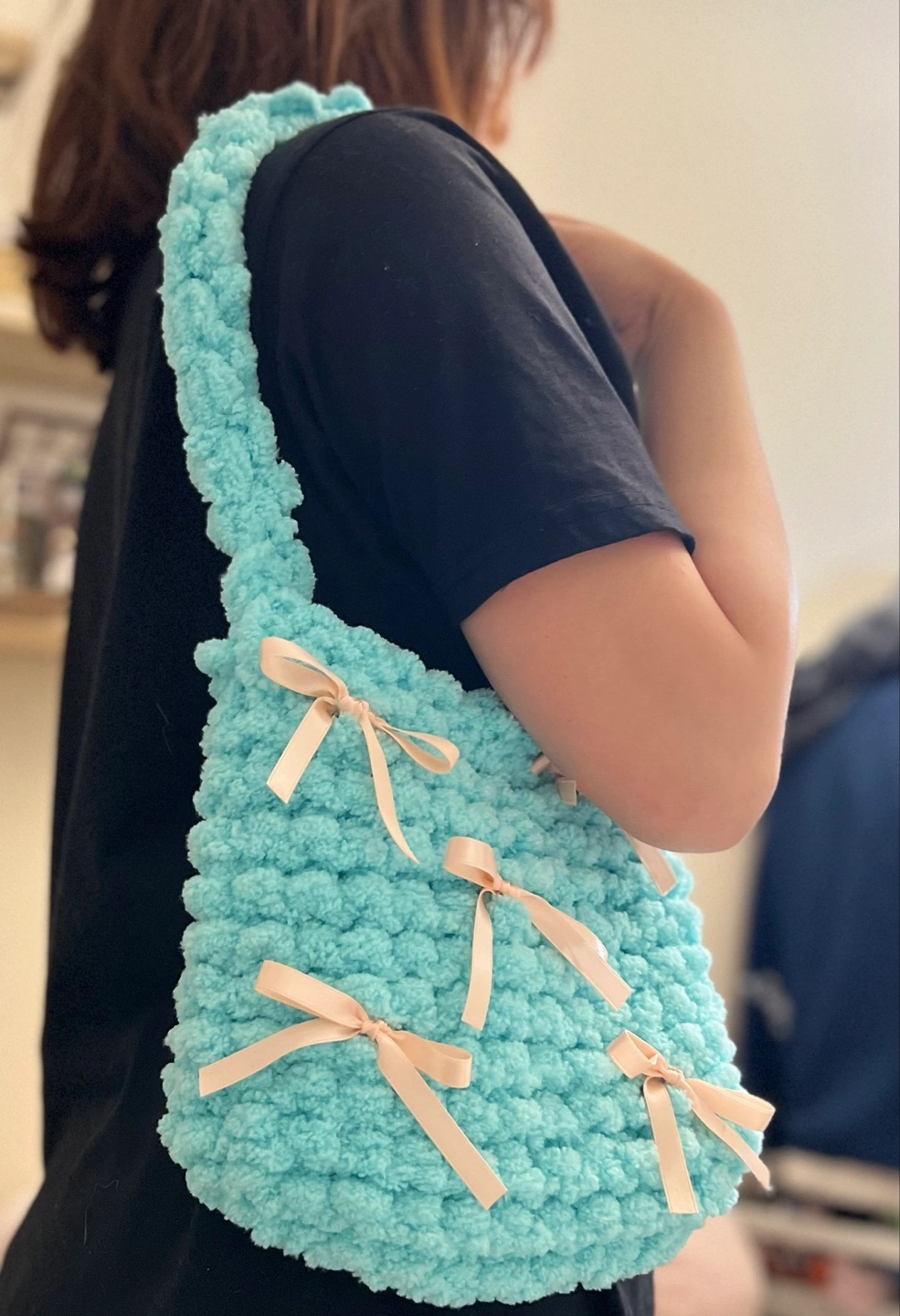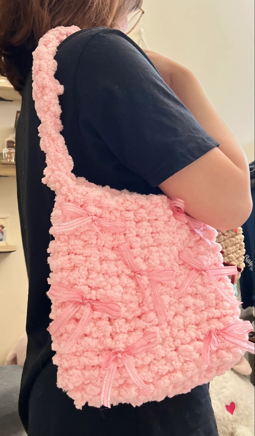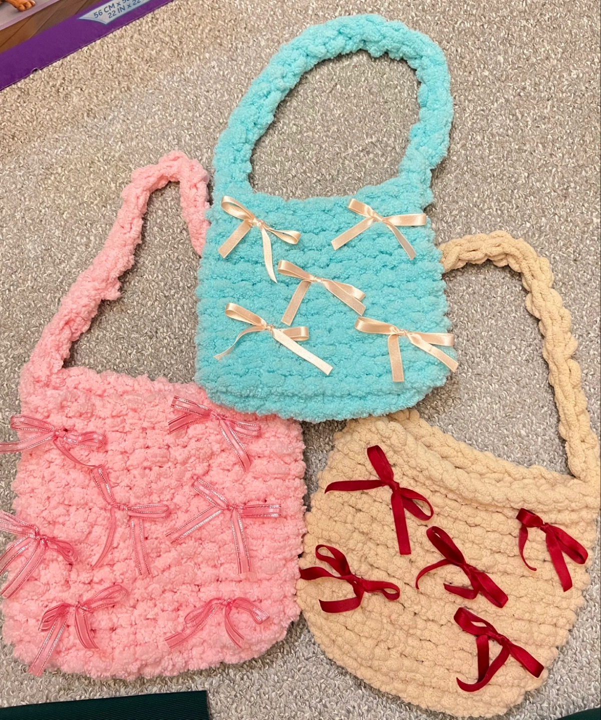 Adorable handmade shoulder bags. Fluffy material. Pastel colours with matching ribbon bows. Perfect for everyday use or a cute gift. 15 each or 40 for everything.