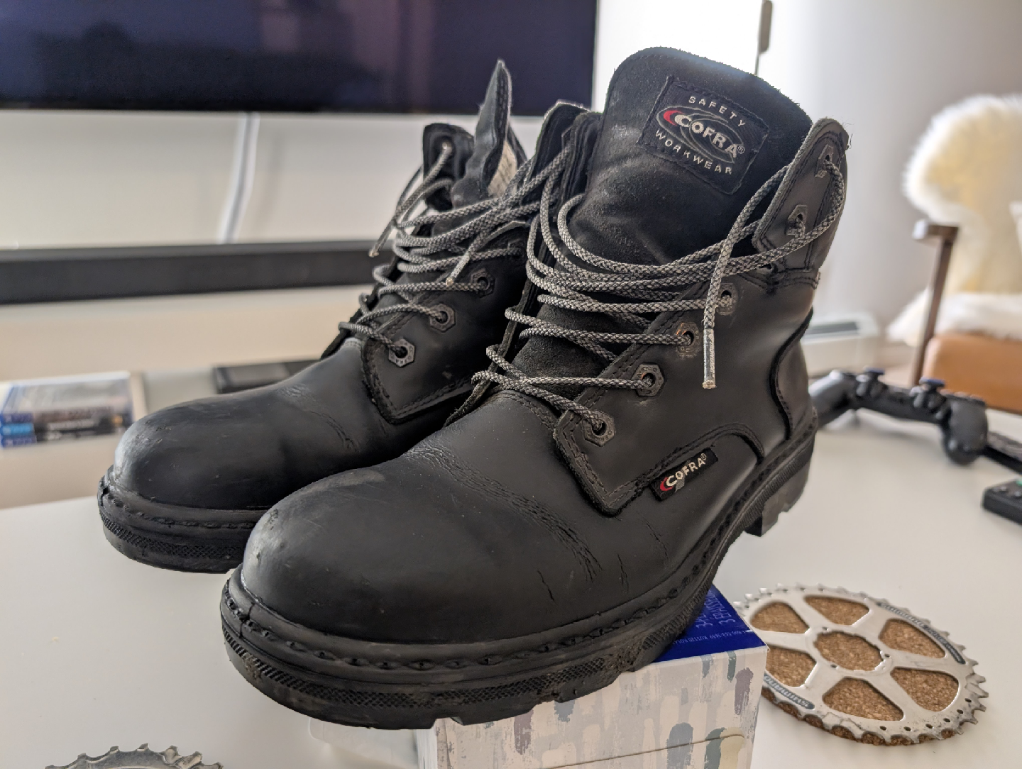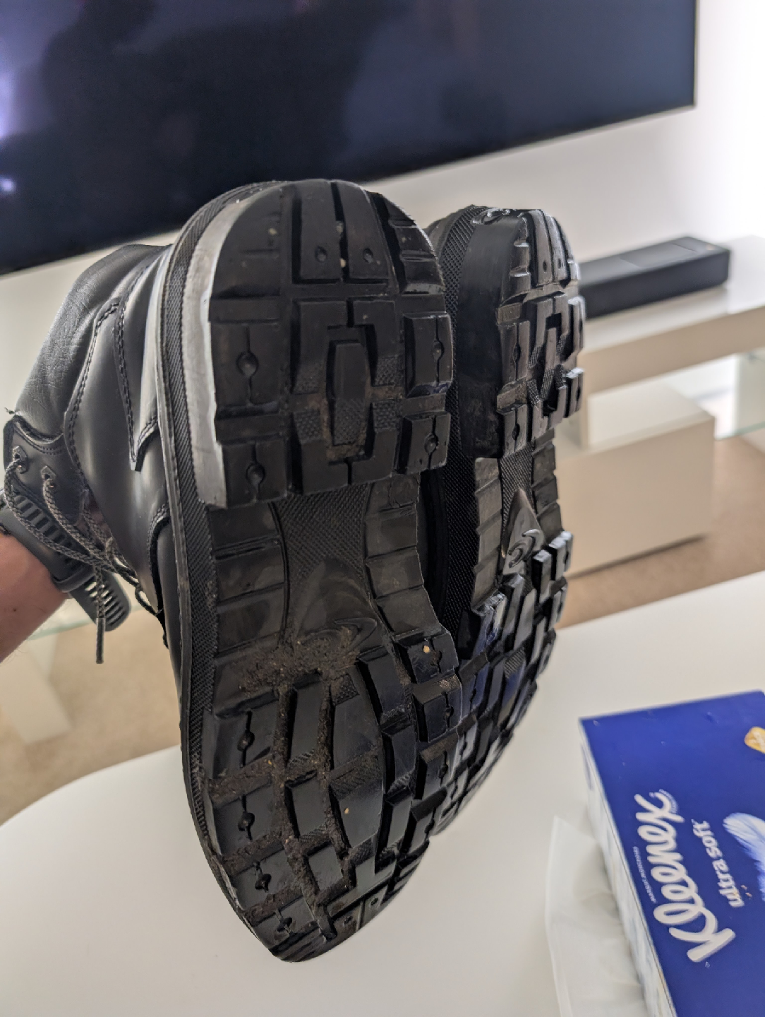 Selling a pair of Cofra safety workwear boots in black leather. They are in used condition, with minor wear on the soles, but still have lots of life left. its only been uses indoor mainly, in warehouse
