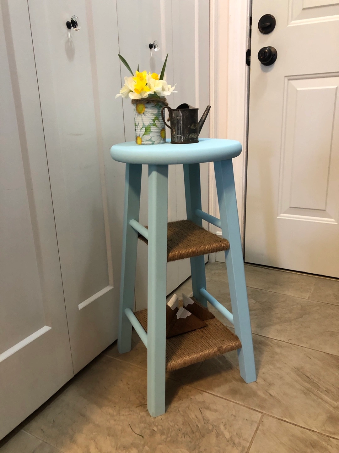 Just refinished and sealed with a soft touch verathane for extra durability. Super cute accent table/ plant stand/ front hall decor.