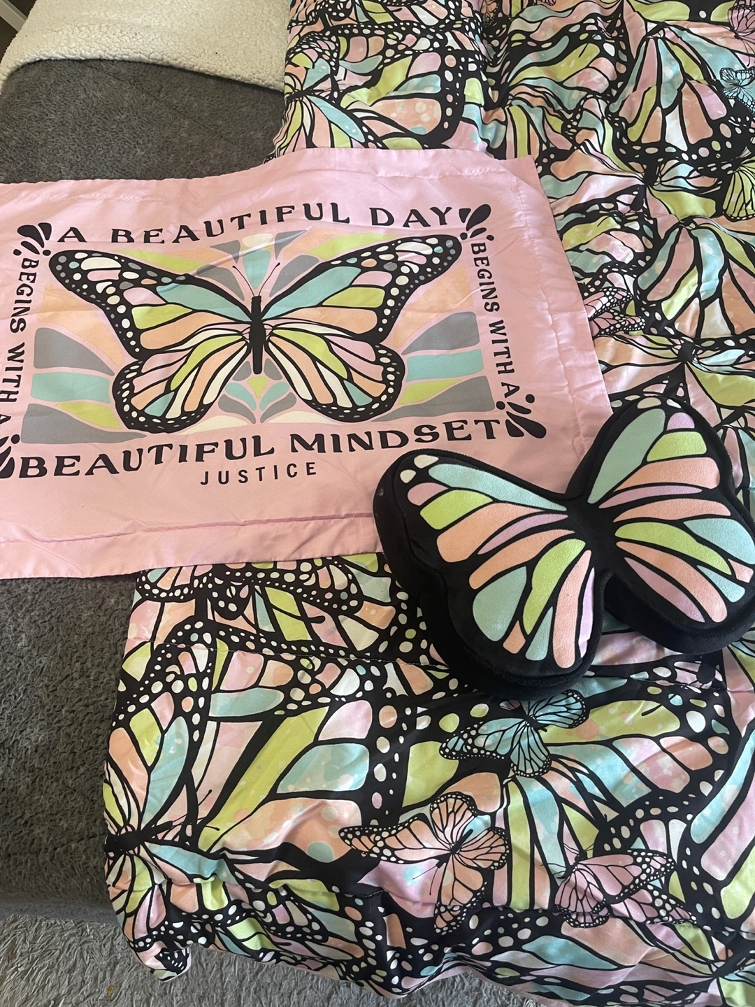 Twin reversible comforter - butterfly and Pastel pink on the other