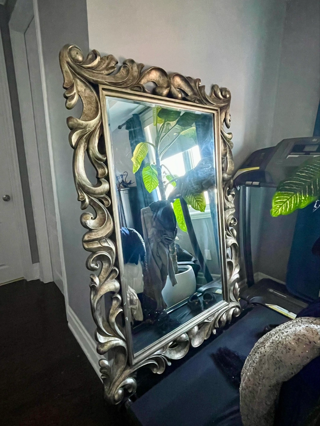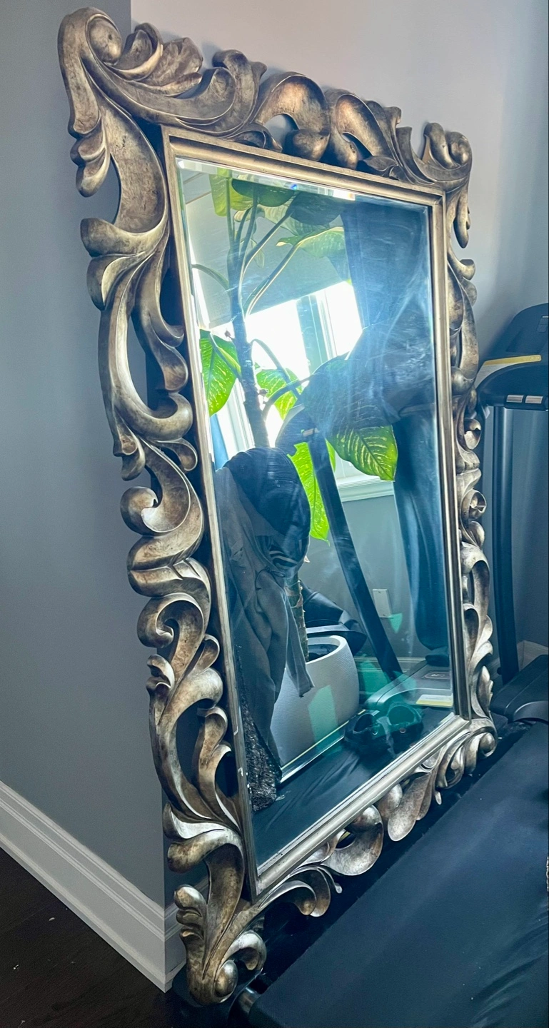 Buy & SellOrnate Wall MirrorOrnate Wall Mirror$100Large wall mirror. Intricate silver-toned frame. Ornate detailing. Great for entryway, hallway or bedroom.WHERE TO MEETCheck LocationView MapSELLERverifiedSalThe Hill650 reviews3 chats·2 favorites·62 viewsSEND CHAT TO SELLERHi Sal! I’m interested in your listing.Hi Sal! I’m interested in your listing.Get the Karrot app to chatSign In to chat