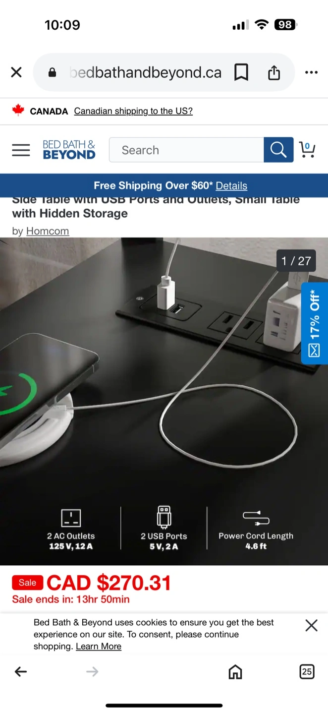 Side Table with USB Ports and Outlets