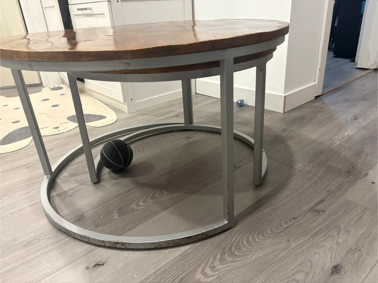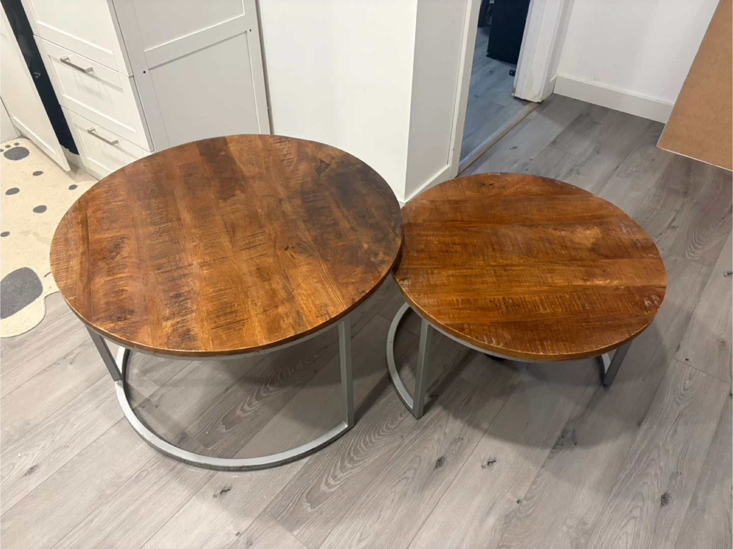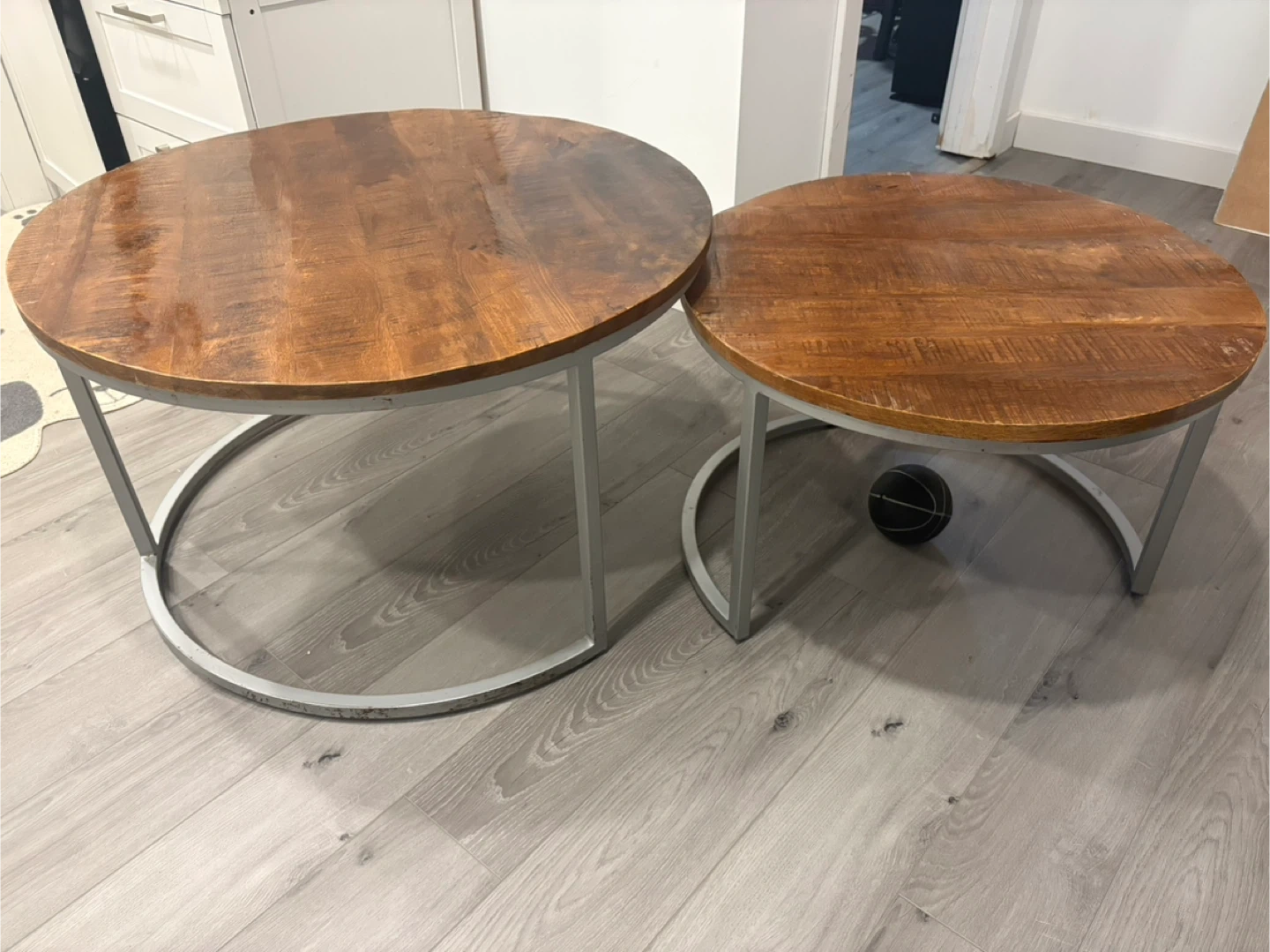 This set includes two nesting round coffee tables with wood tops and metal bases. They're perfect for any living room! Some dings from move on metal as shown in pictures. $150 for set. Pick up in Lincoln