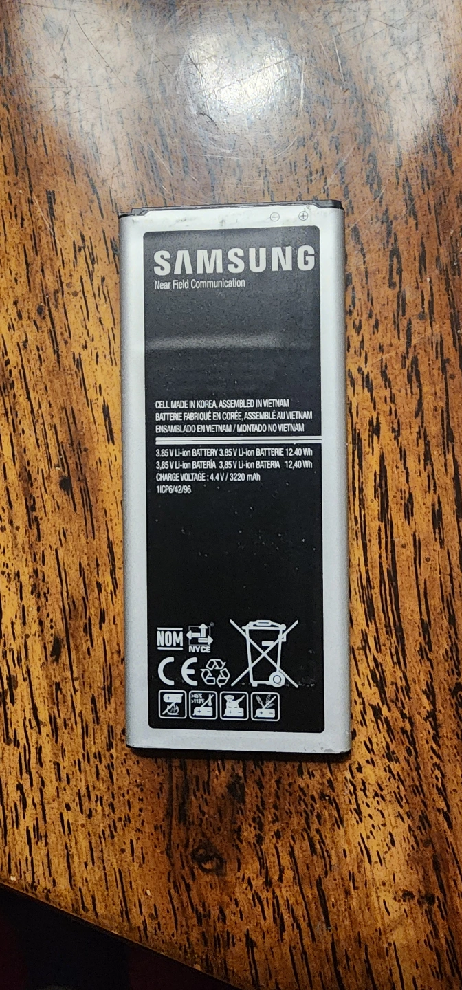 Genuine Samsung battery. Near Field Communication. Cell made in Korea, assembled in Vietnam. 3220 mAh. 12.40 Wh.