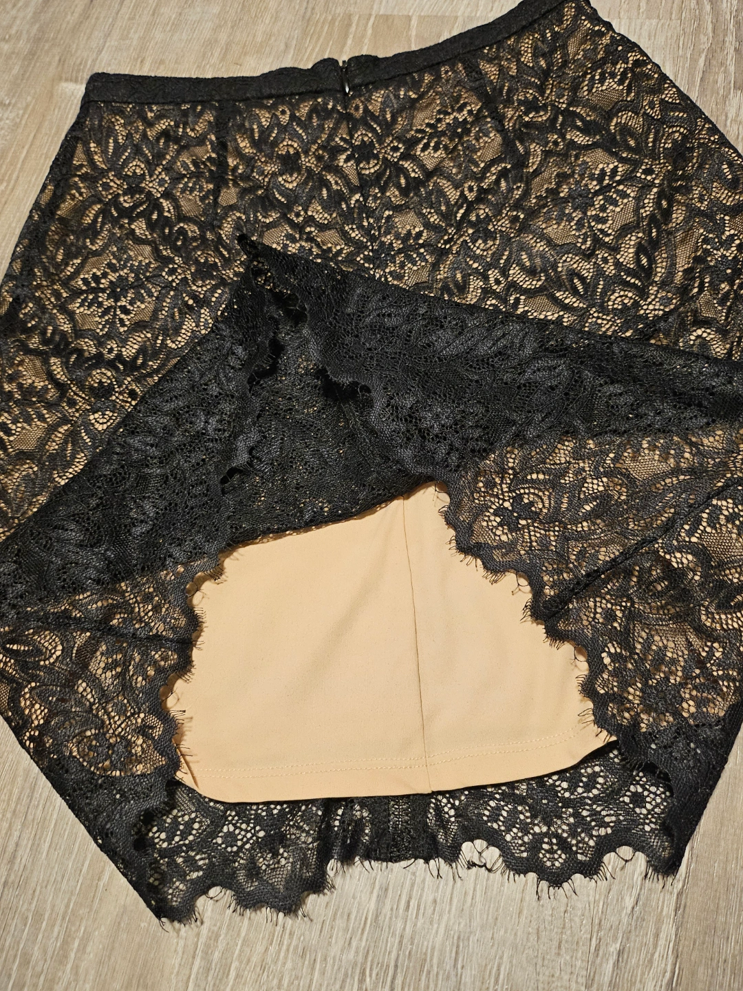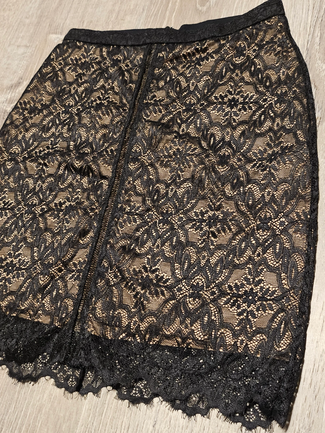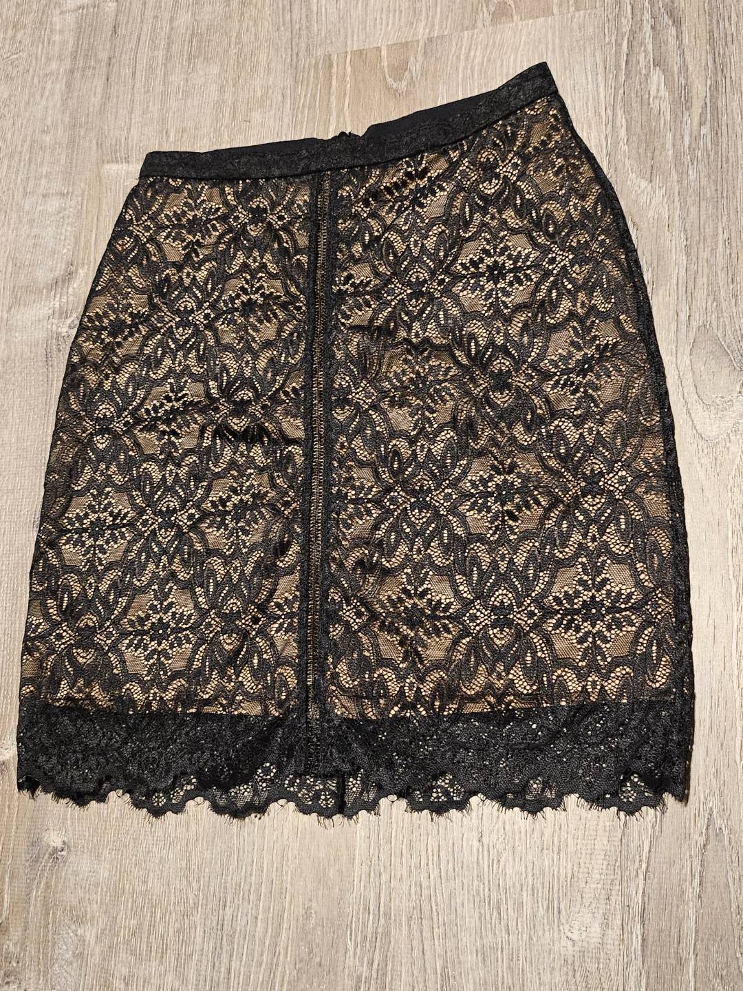 125Black and beige lace mini skirt. Size 0. Back zipper closure. Lined. New without tags Size 0