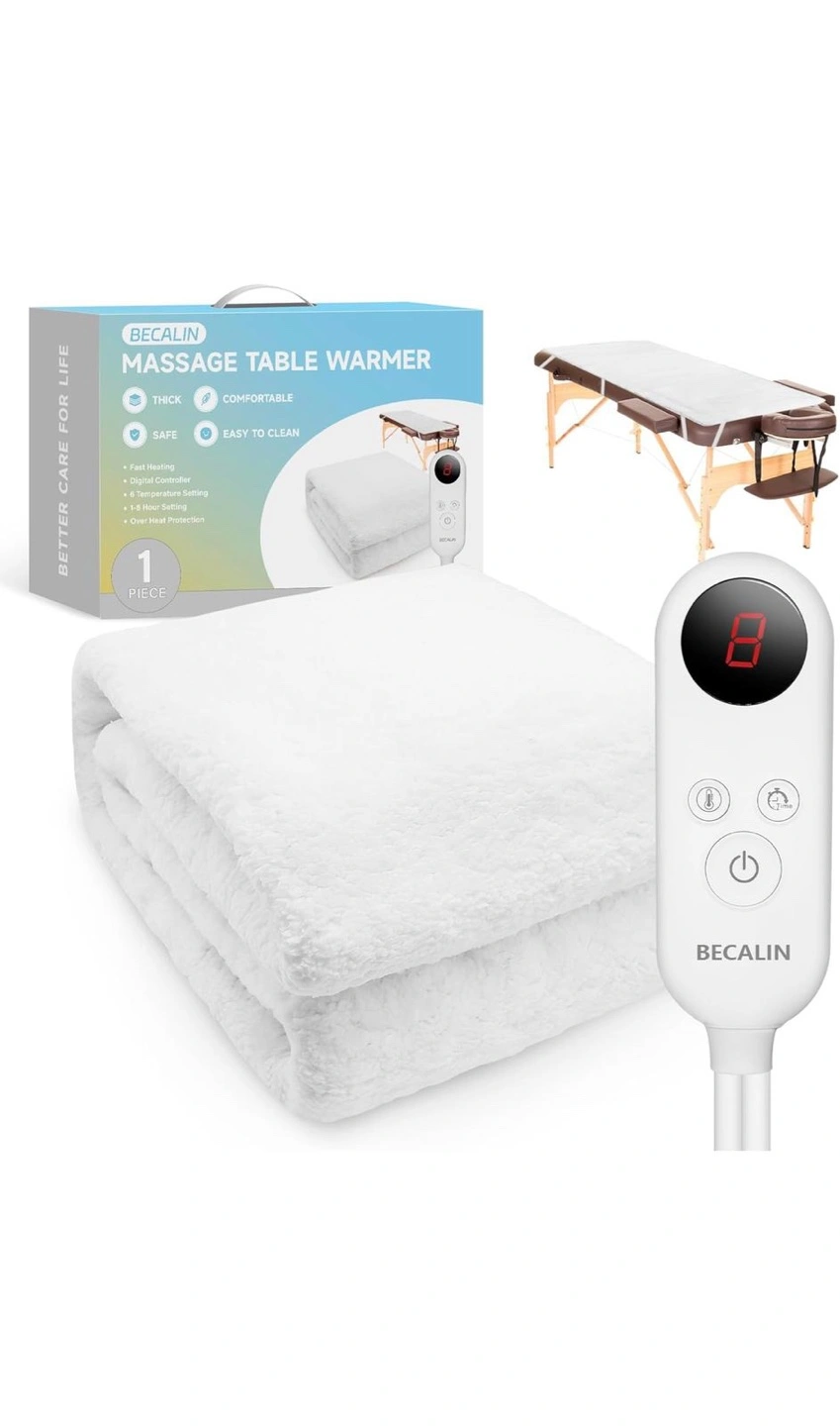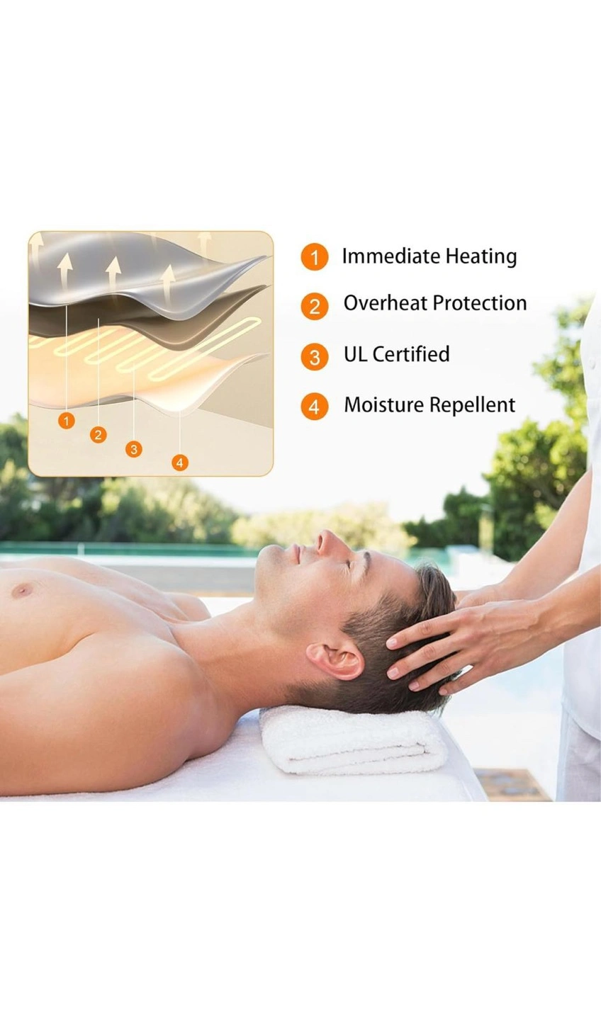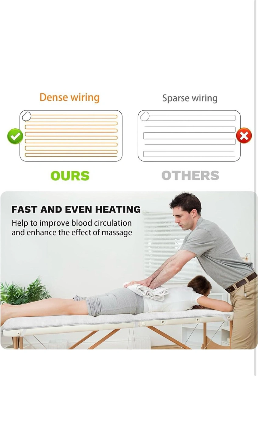 33Plush fleece massage table warmer pad. Features include elastic straps, delicate edge finish, soft and fluffy texture, and fast and even heating. UL certified and moisture repellent. Perfect for massage therapists.