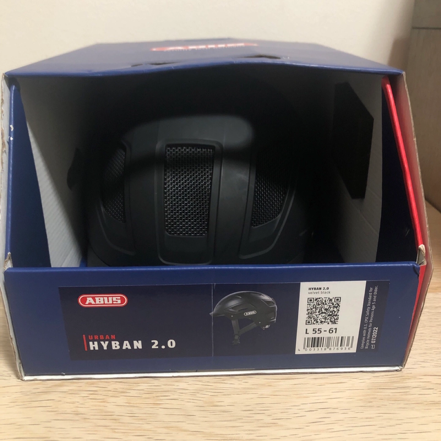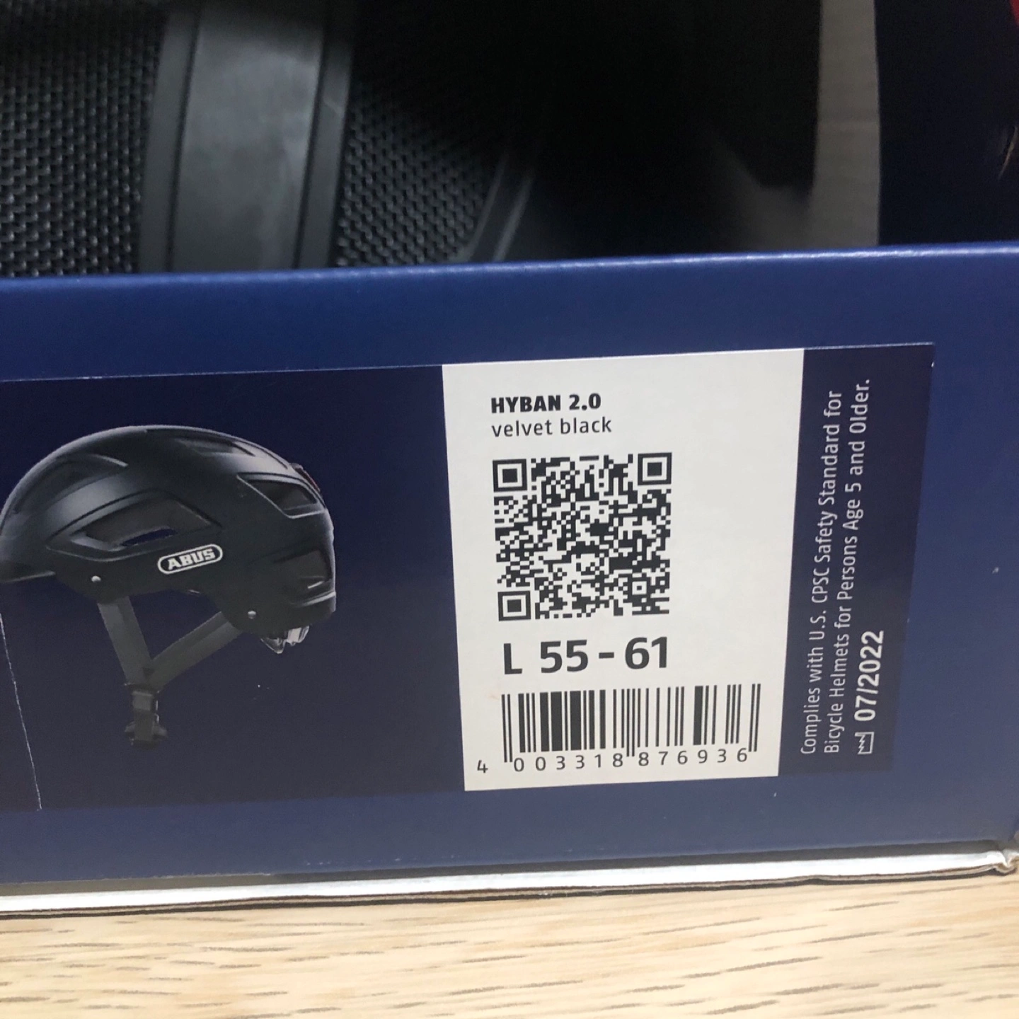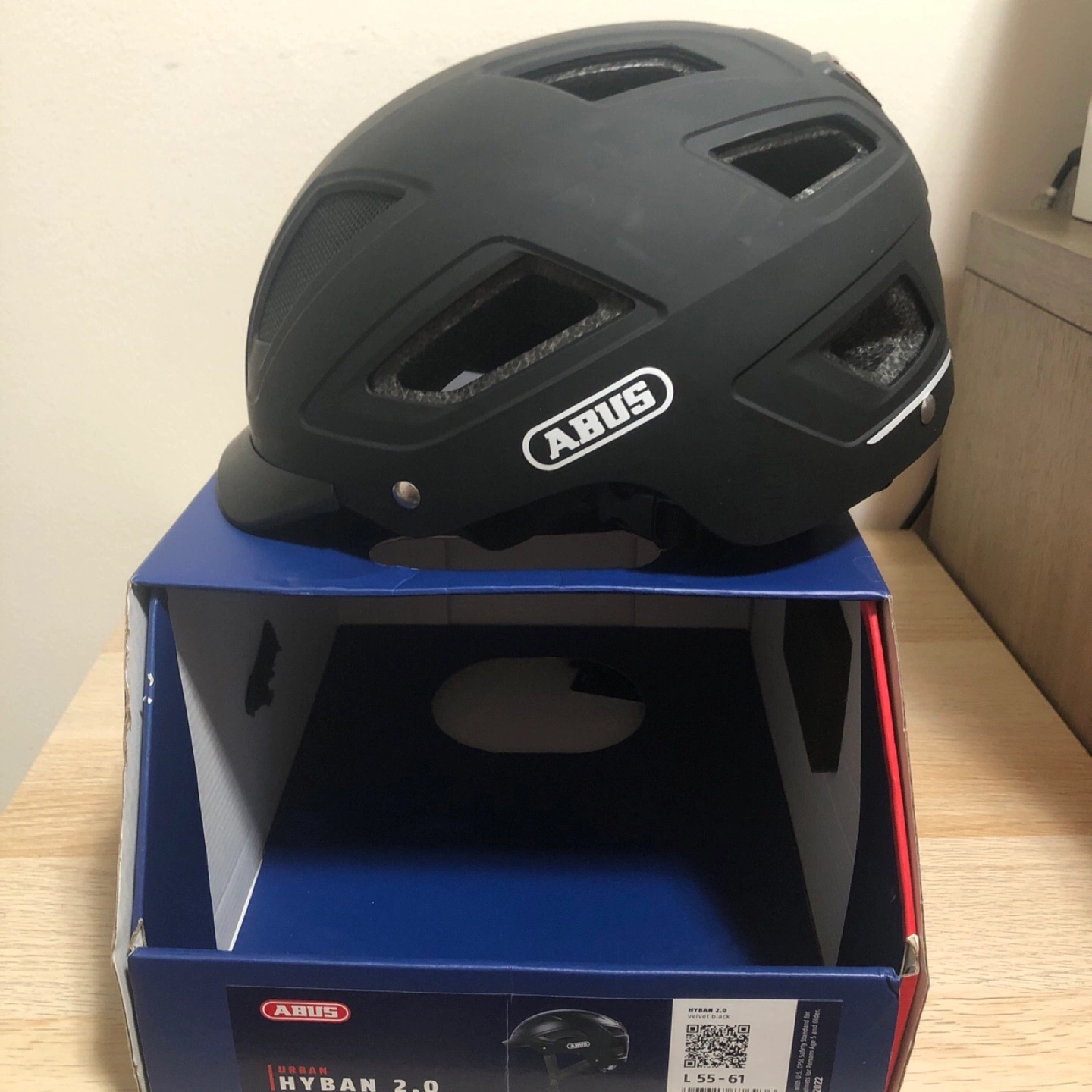 New Abus Hyban 2.0 urban bicycle helmet. Size Large (55-61cm). Velvet black color. Comes in original box. Safety standard compliant.