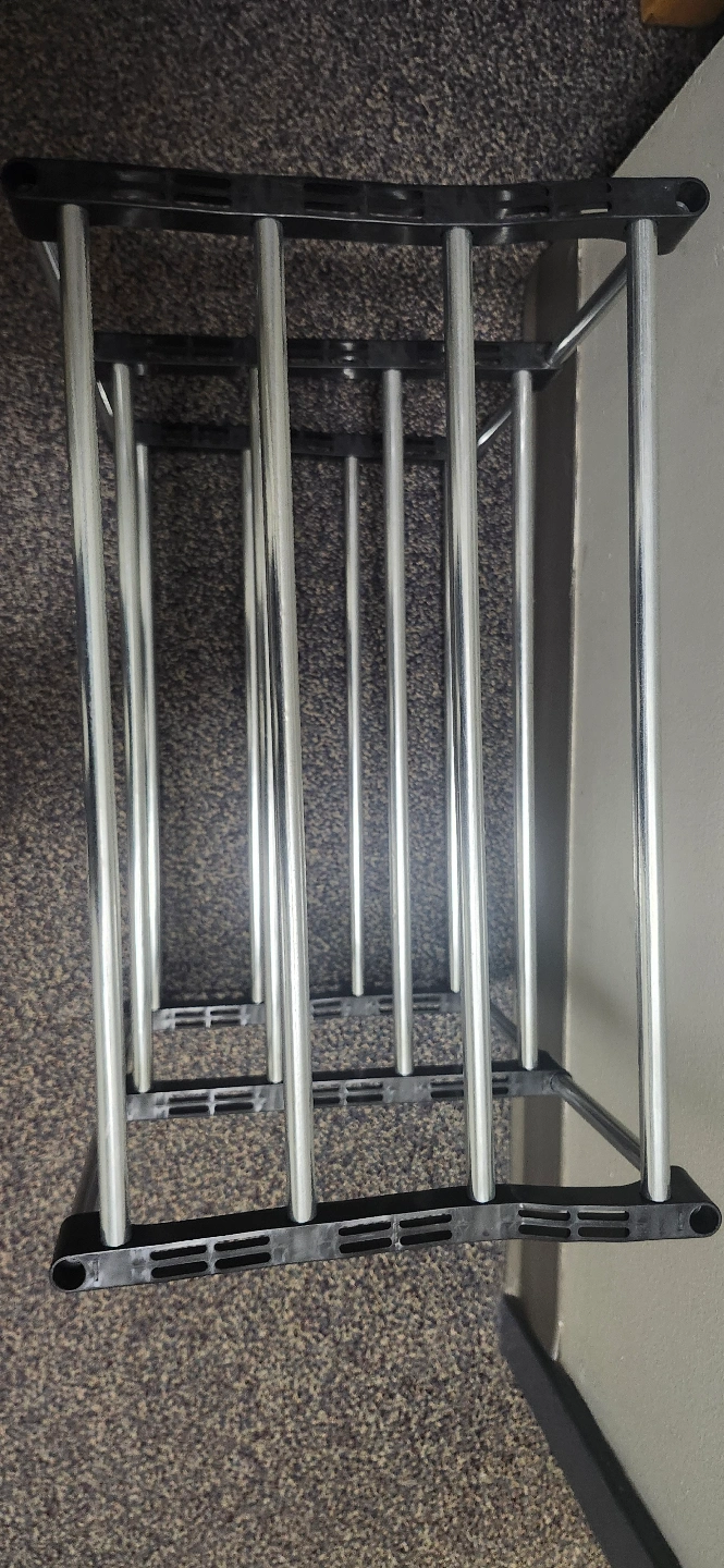 Buy & SellTwo-Tier Metal Shoe RackTwo-Tier Metal Shoe Rack$15Silver metal shoe rack. Two tiers. Black plastic supports. Easy assembly. Great for organizing shoes.WHERE TO MEETkalamalka ubcoView MapSELLERverifiedJadaWest Kelowna750 reviews0 chats·0 favorites·7 views