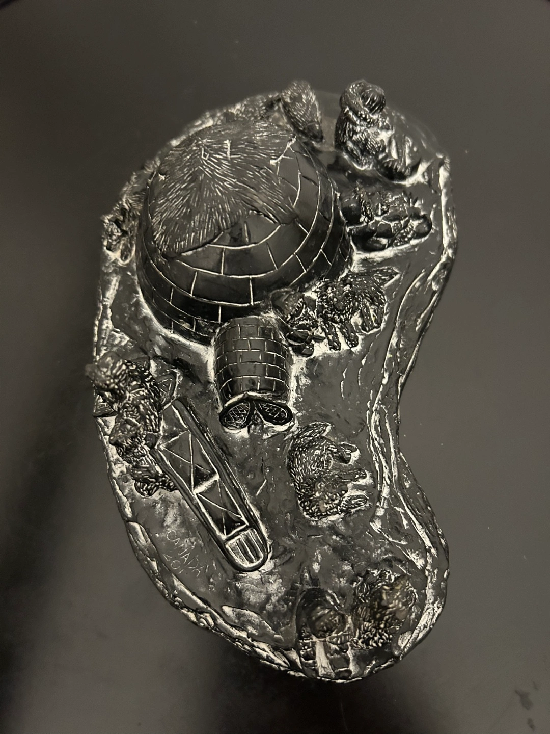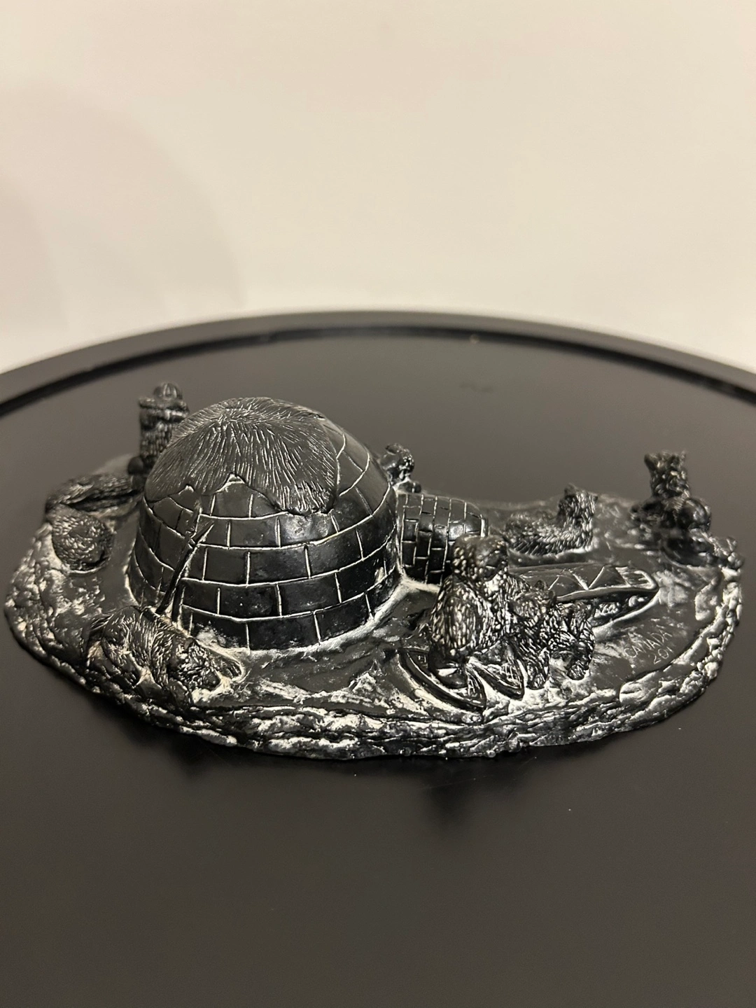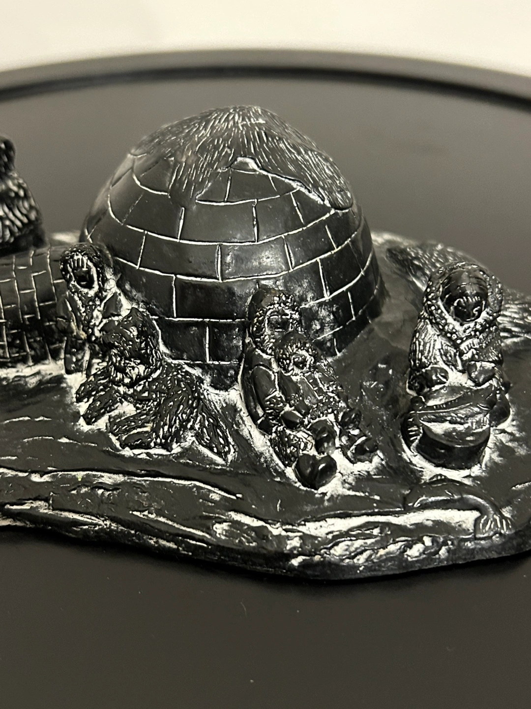 Vanstone Black Soapstone Carved Canada Igloo Eskimo Family 7”