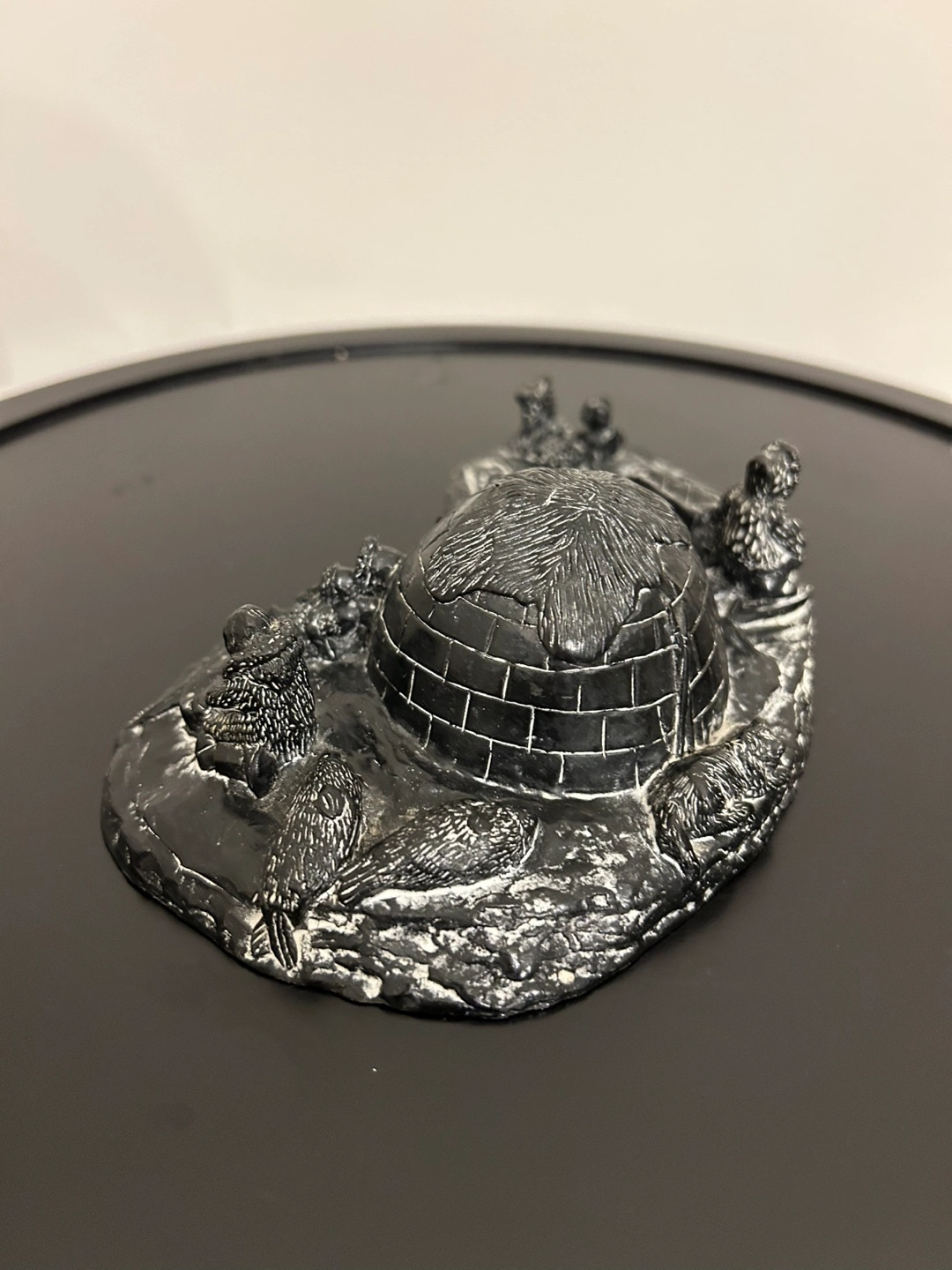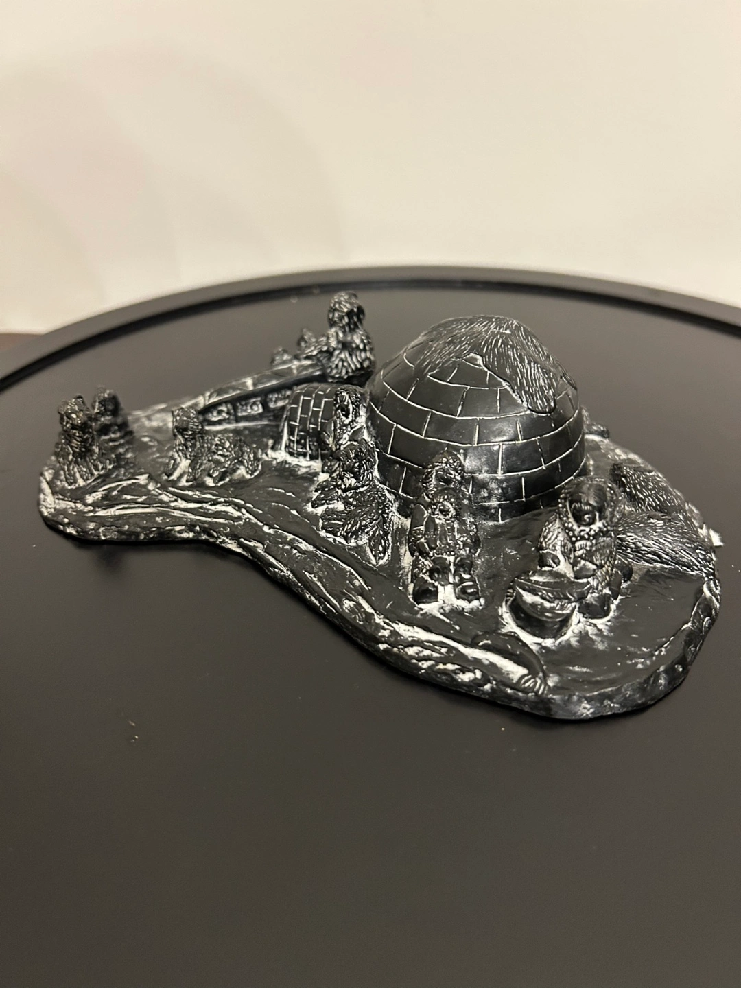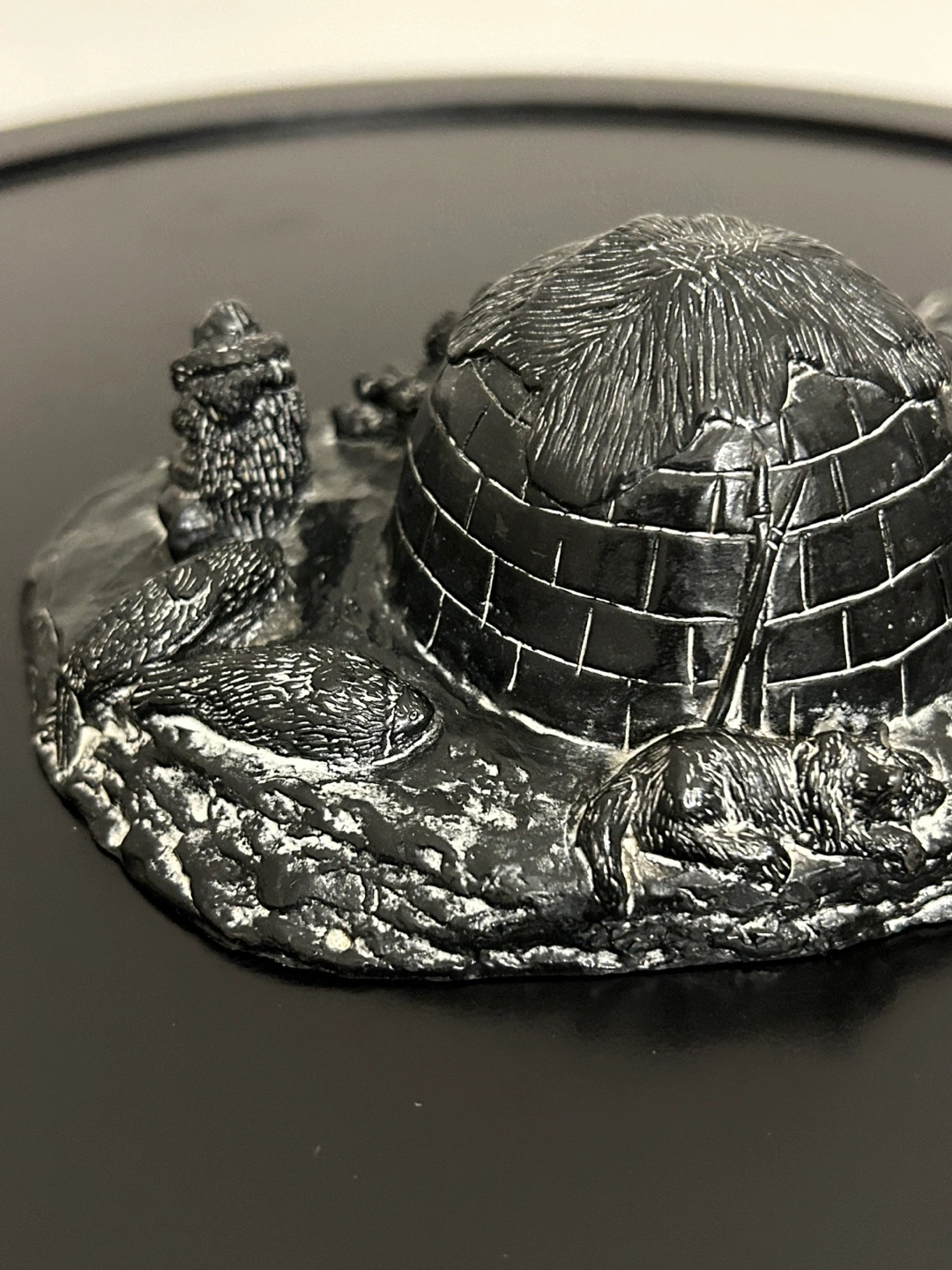 Vanstone Black Soapstone Carved Canada Igloo Eskimo Family 7”