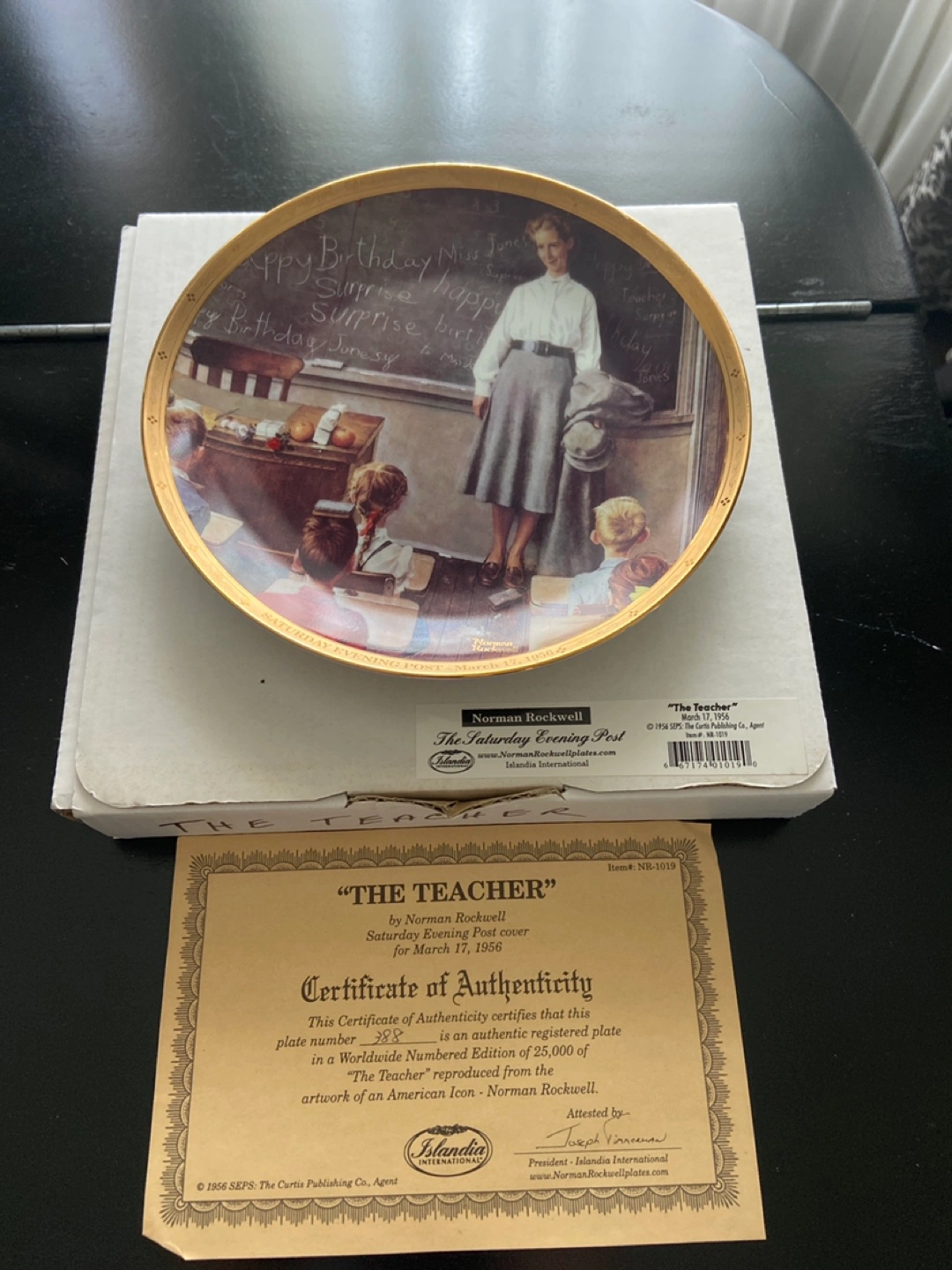 20Limited edition collector plate. Features Norman Rockwell artwork. Comes with certificate of authenticity and original box. Part of a worldwide numbered edition of 25,000.