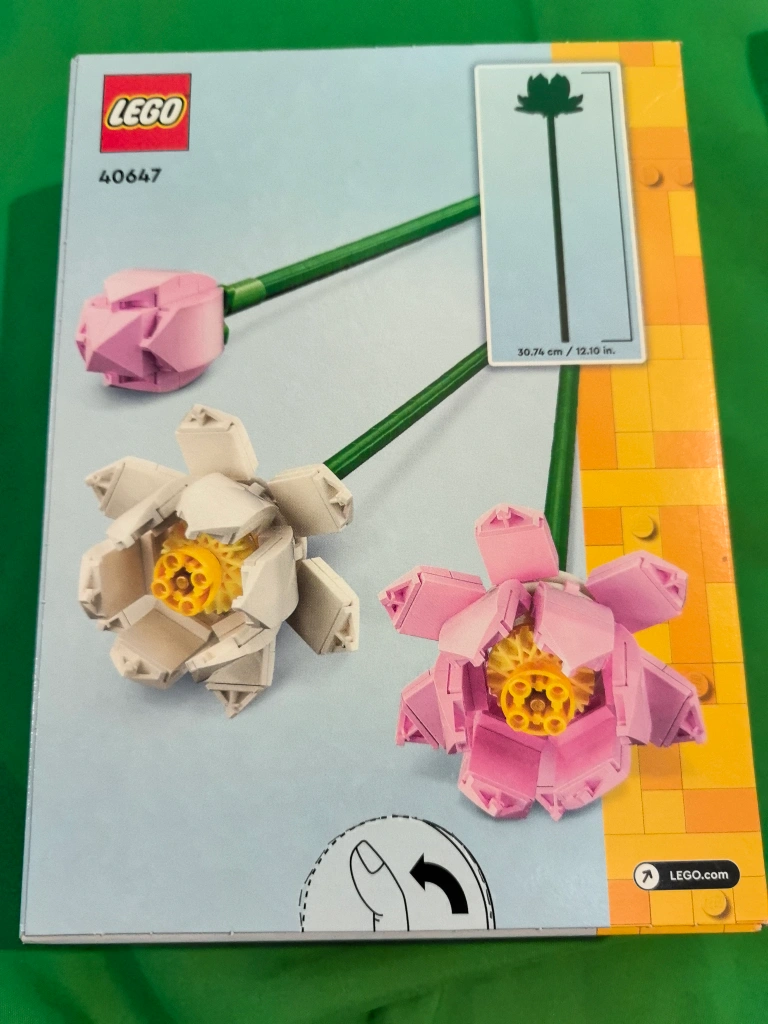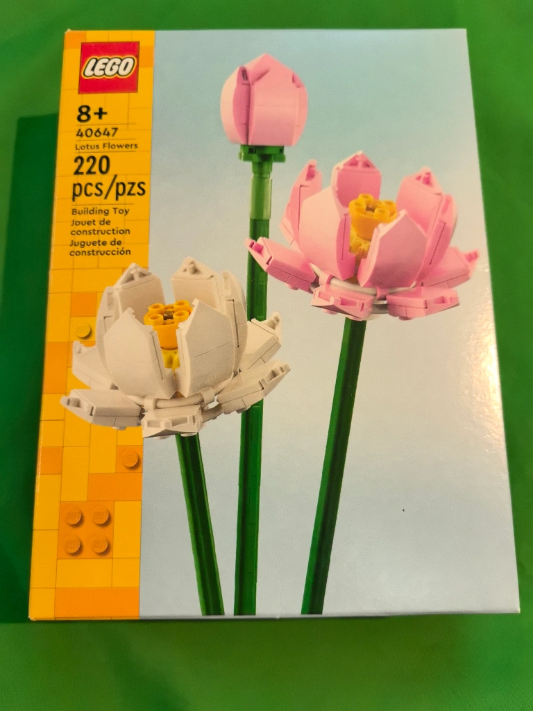 16New LEGO set. 220 pieces. Ages 8+. Build three lotus flowers. Includes instructions.