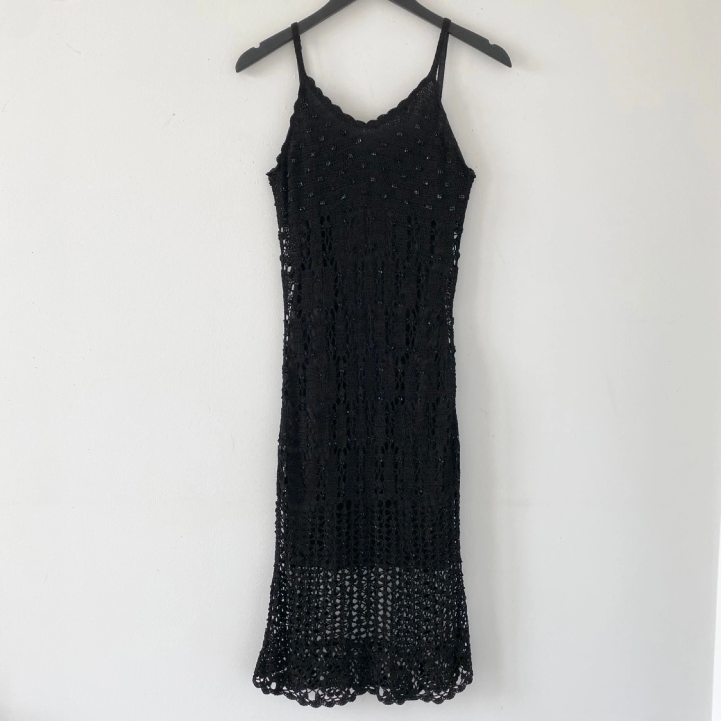 615Pick up only in Leslieville (Queen and Pape) Check out other listings! Vintage crochet beaded midi dress with scalloped edges. Crochet has a looser weave so it has some natural stretch. Lined with lightweight , soft and stretchy knit fabric. In excellent condition. Size S Approximate measurements laid flat Pit to pit 14” stretches comfortably up to 17” Center back length 35”