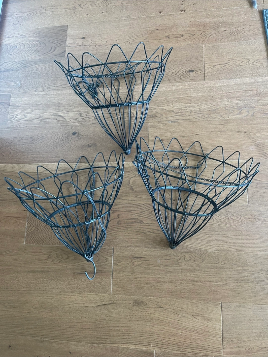 Buy & SellSet of Three Black Metal Hanging BasketsSet of Three Black Metal Hanging Baskets$150Three black metal hanging baskets. Unique cone-shaped design. Perfect for plants or storage. 14”WHERE TO MEETCheck LocationView MapSELLERBELLASUNByron150 reviews0 chats·0 favorites·14 views