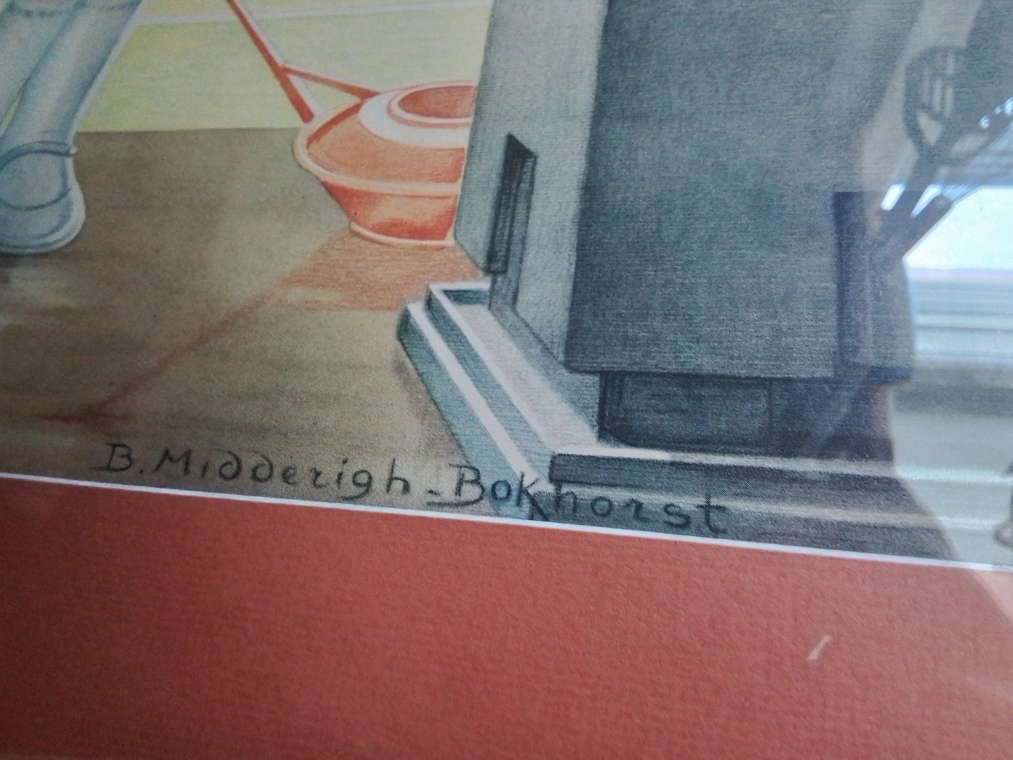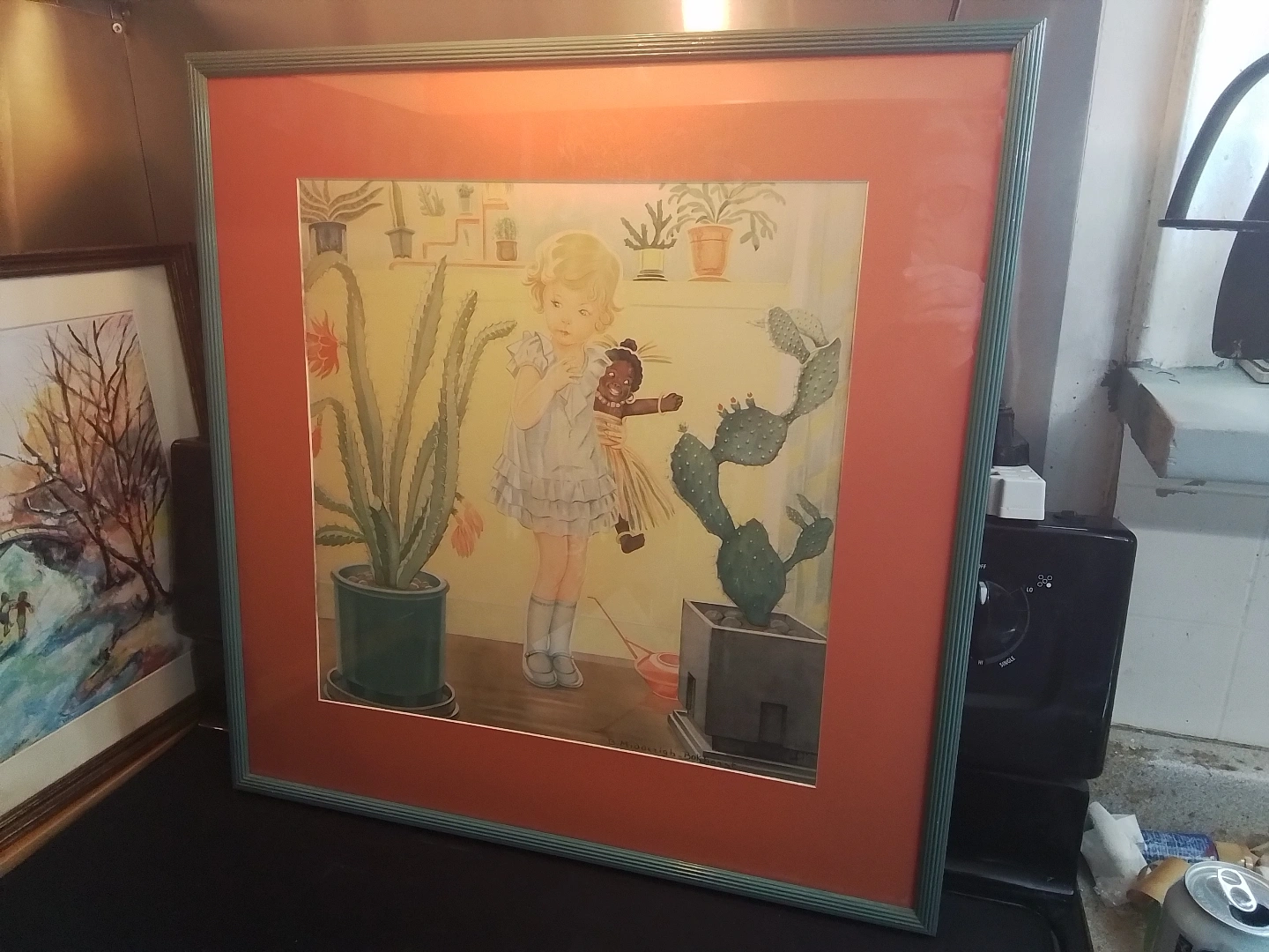 114Framed Art Print by B. Midderigh-Bokhorst Charming Little Girl With Norah Wellings Doll Art Deco Style Art Print By Berhardina -Midderigh-Bokhorst " This is a beautiful framed print by B. Midderigh-Bokhorst, showcasing a charming scene of a young girl with a doll amidst potted plants. The print is in good condition, with a lovely color palette that adds a touch of vintage appeal to any room. It's a delightful piece of art that brings a sense of nostalgia and warmth. No issues Measurements: Frame 22.5" x 22" If the ad is still up, then yes, it is still available! Framed print featuring a young girl holding a doll. Plants and a watering can are also depicted. Signed by B. Midderigh Bokhorst. Great addition to any vintage decor. Pickup at Young Street and Steels Ave