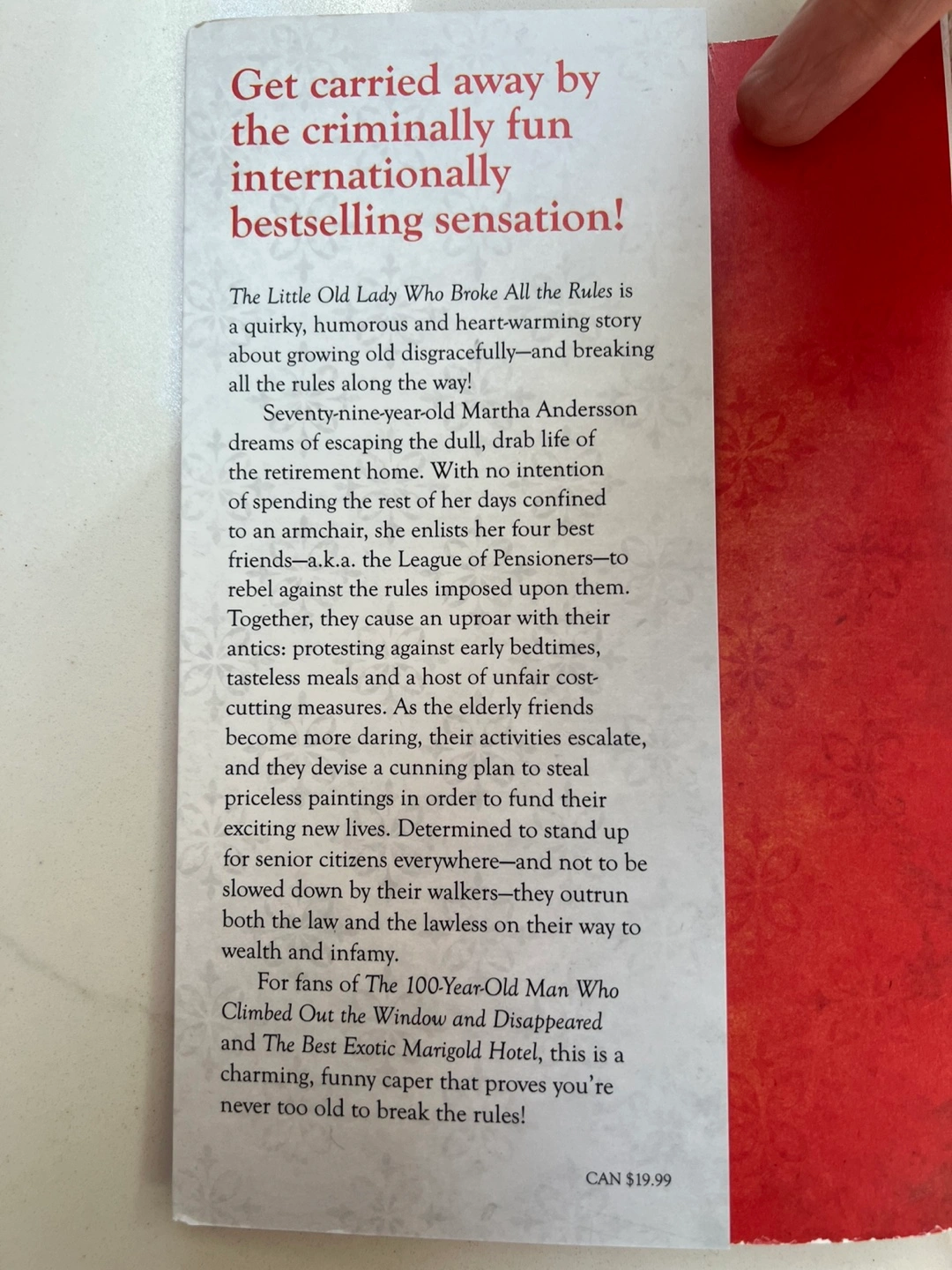 Paperback novel. International bestseller. Humorous crime caper. Features quirky characters and heartwarming story. Great condition. Pickup only We are located in Oakville on Third Line, South of QEW and North of Lakeshore Thank you for looking and please check out our other items