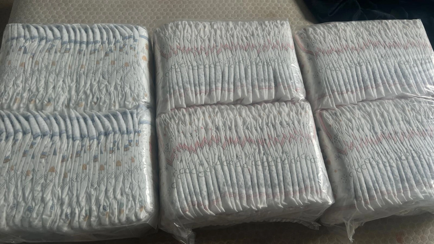 Three unopened packs of baby diapers. Size and design shown in images. Perfect for parents or daycare providers. total 142 diapers Pampers and Huggies.