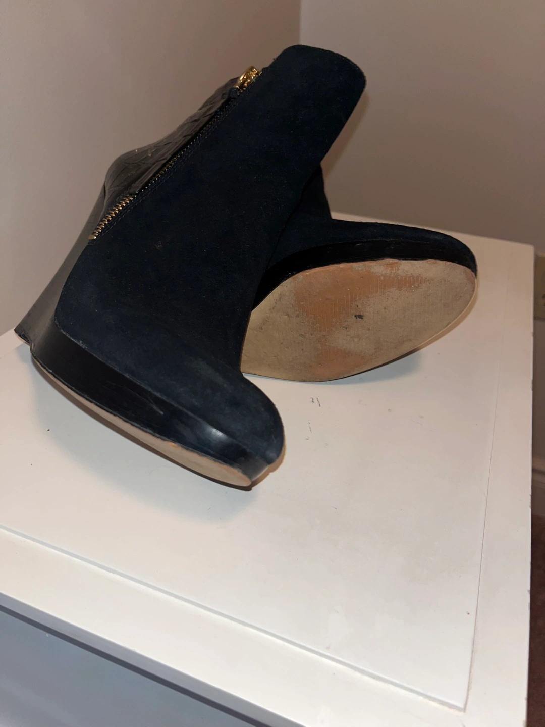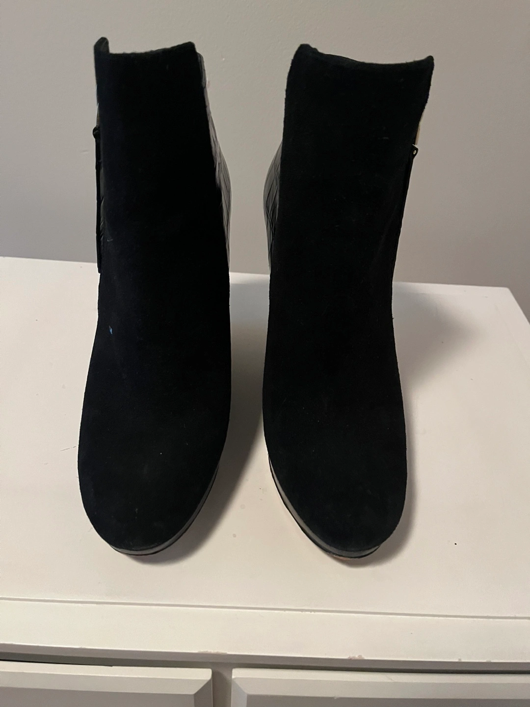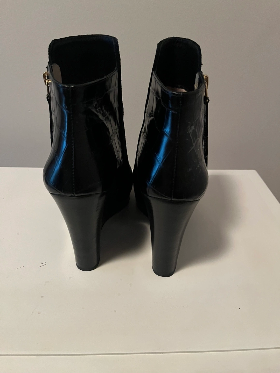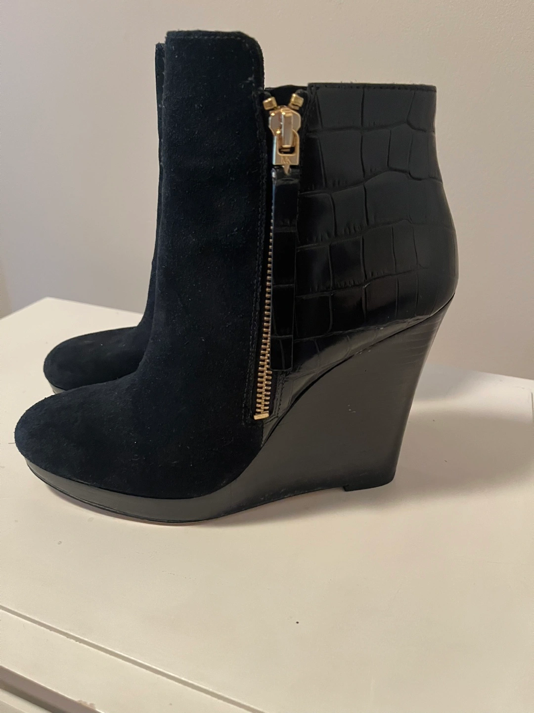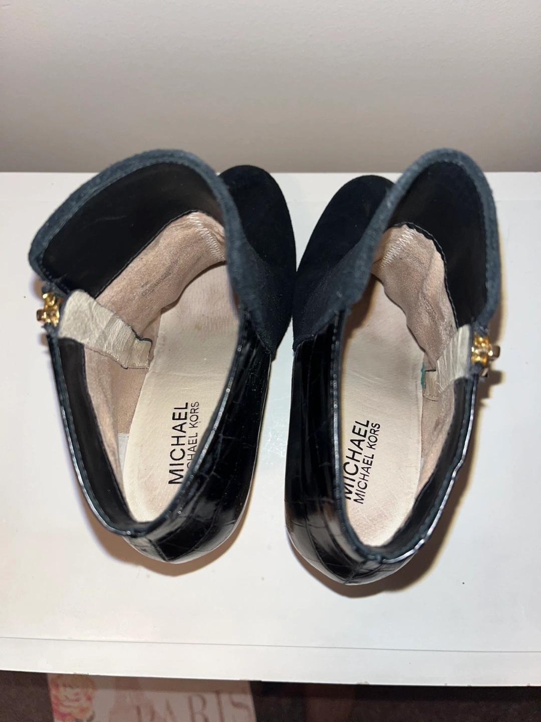 Michael Kors Black Leather and Suede Booties…leather has alligator print. 4” Wedge heel , side gold zipper - I’m almost new condition