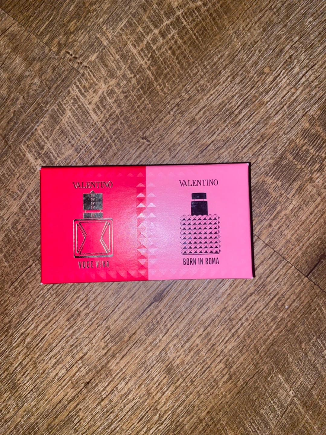 Valentino perfume gift set. Includes two miniature bottles: Vogue Viva and Born in Roma. Perfect gift or for personal use. New, unopened.