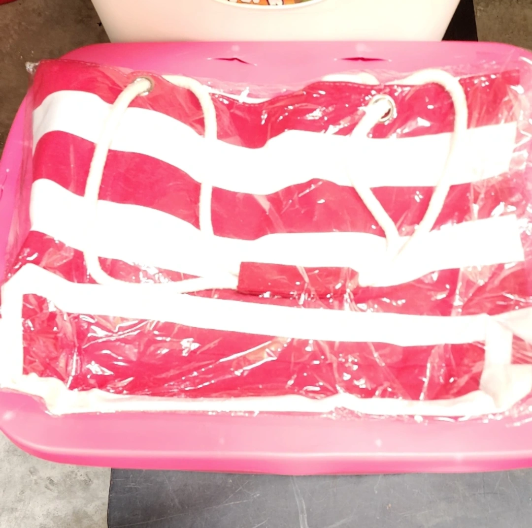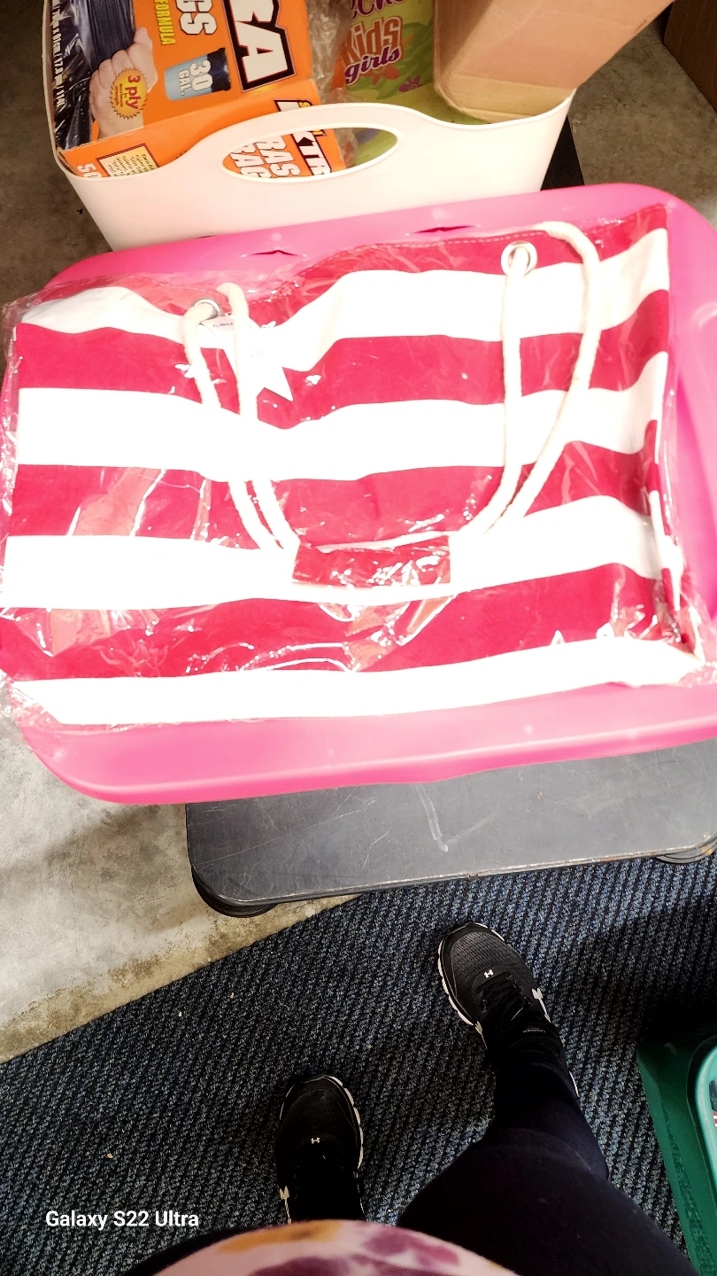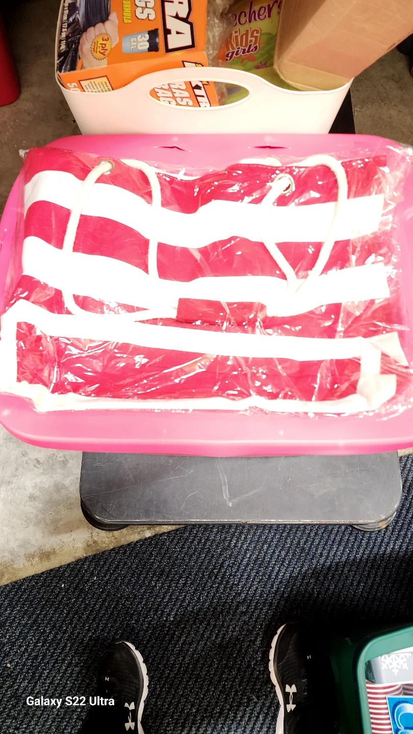 736Large tote bag. Red and white stripes. Rope handles. New with tags and wrapped in plastic. Perfect for the beach or everyday use. Will deliver locally. Price negotiable.