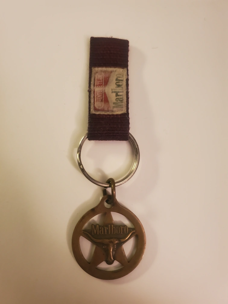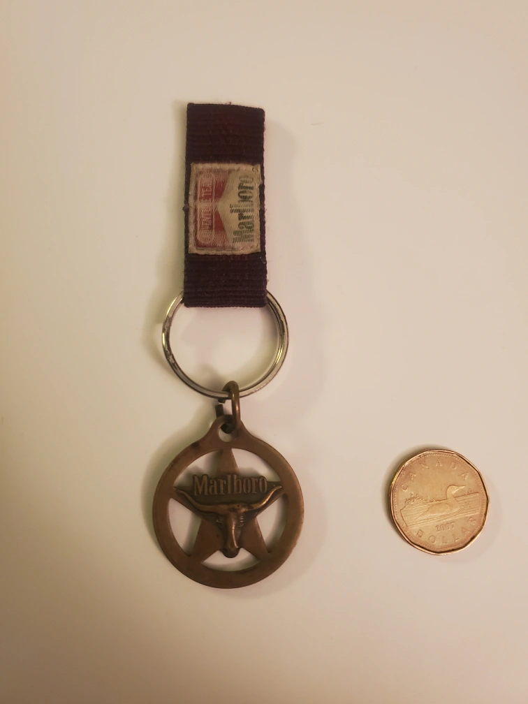71This is for a vintage original Marlboro Brass Horned Steer Western Texas Star Longhorn Buck Keychain with "ribbon". Comes from a non smoking home. Loonie displayed for sizing. Pickup Dufferin and Steeles area or shipping available for a fee.