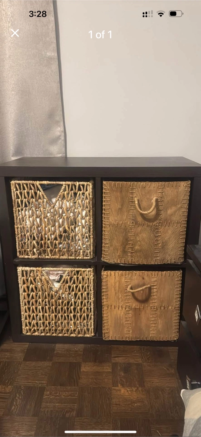 Buy & SellCube Organizer with BasketsCube Organizer with Baskets$35Dark brown organizer cube with four woven storage baskets. Two light brown, two beige. Ideal for organizing bedrooms or living rooms.ConditionLike newDimensionsShelf unit : 77x39x77 cm 2 chats·1 favorites·94 viewsSELLERMichelleOld Rexdale231 reviewWHERE TO MEETWeston road, North York
