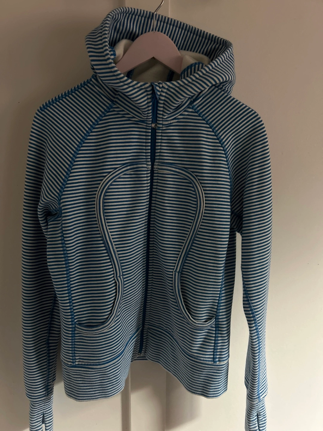 Lululemon scuba hoodie. Size 10. Blue and white stripes. Great condition.