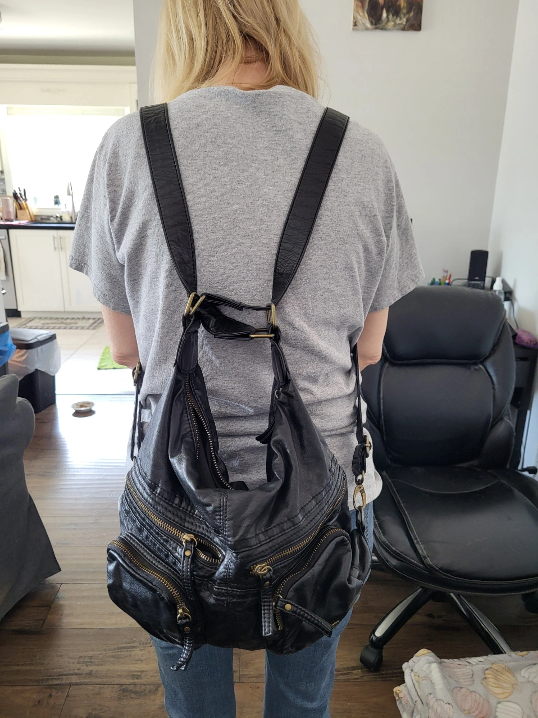 Black Leather Convertible Backpack Purse