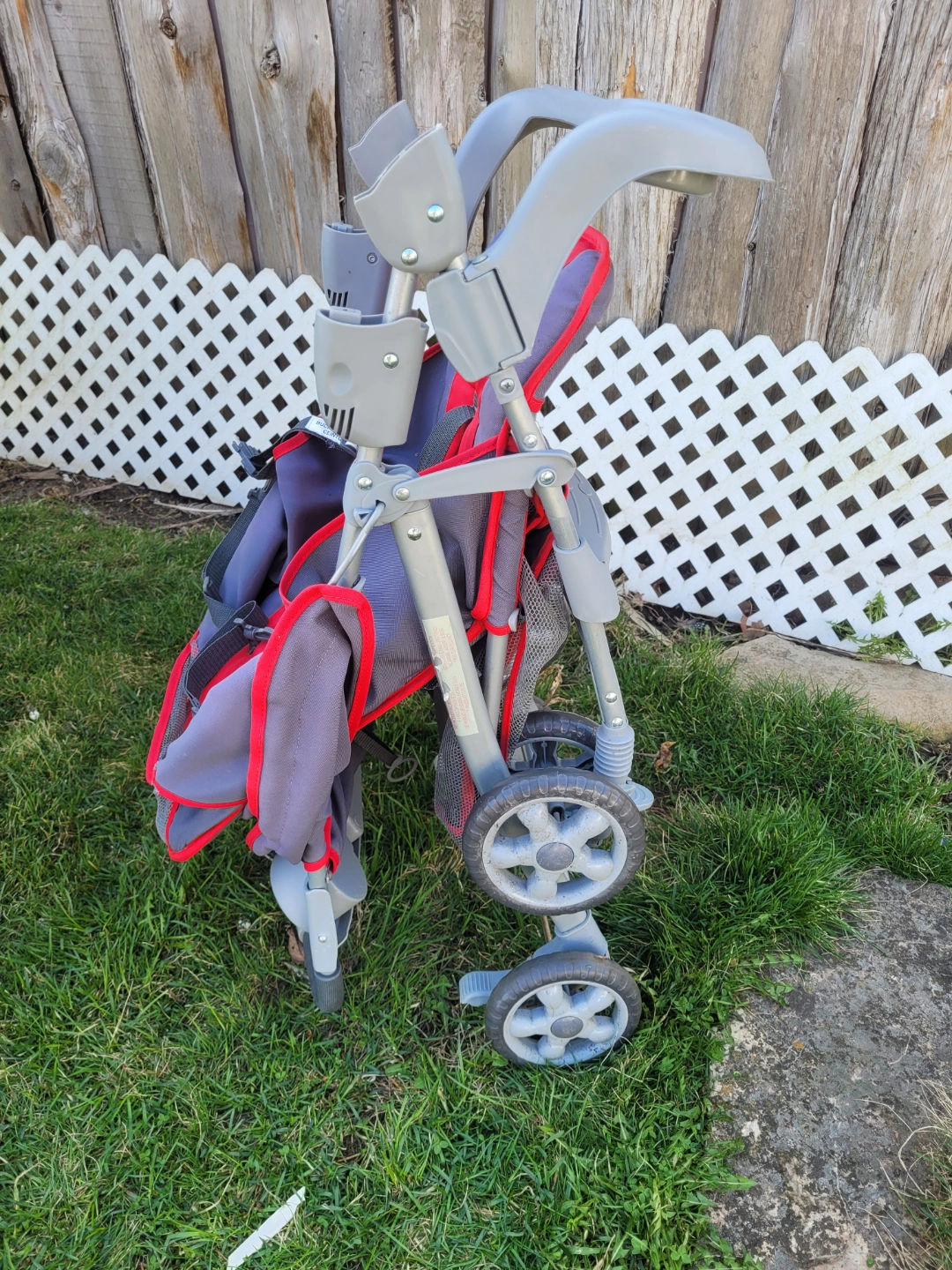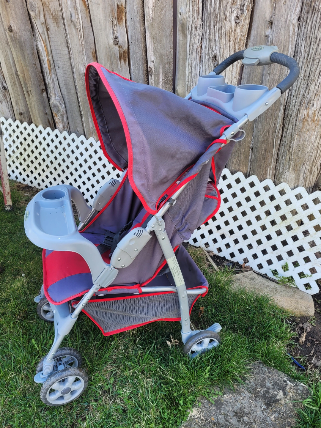 Show allUsed Avalon stroller. Grey and red colour scheme. Features cup holders and a storage basket. Lightweight and easy to fold. Some wear and tear.