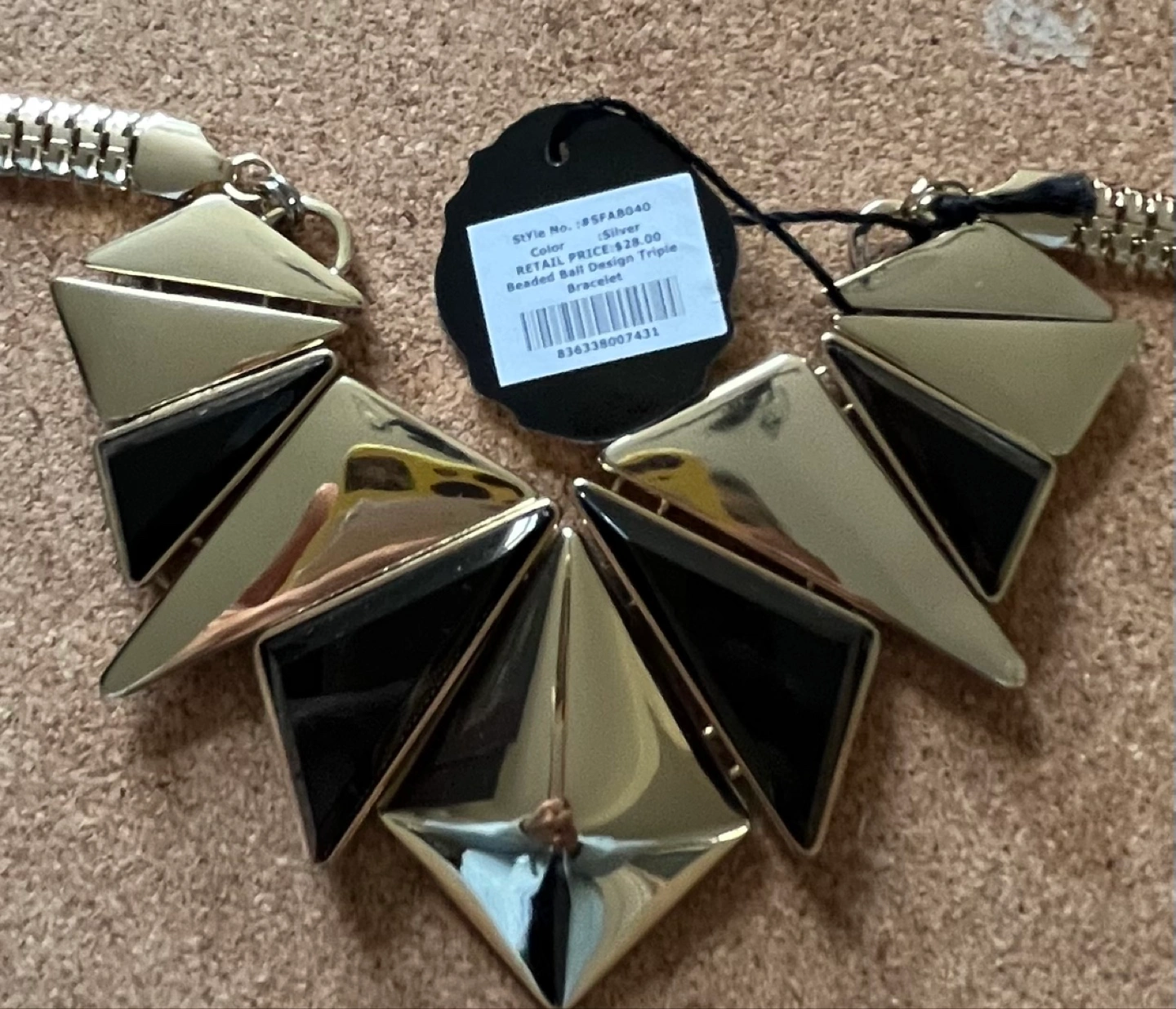 Stunning gold and black statement necklace. Geometric design. Features a chain and clasp. Excellent condition. See attached tag.