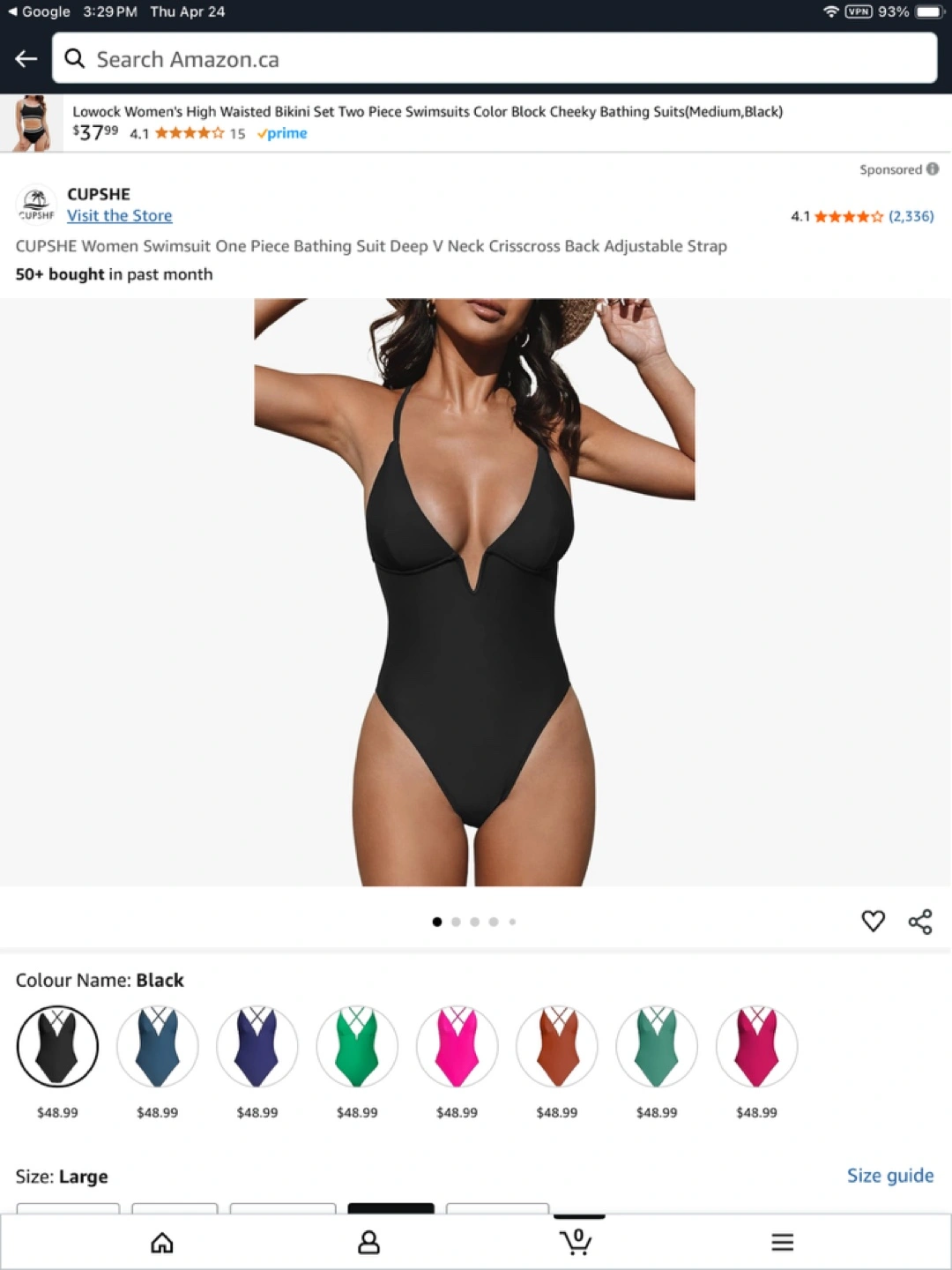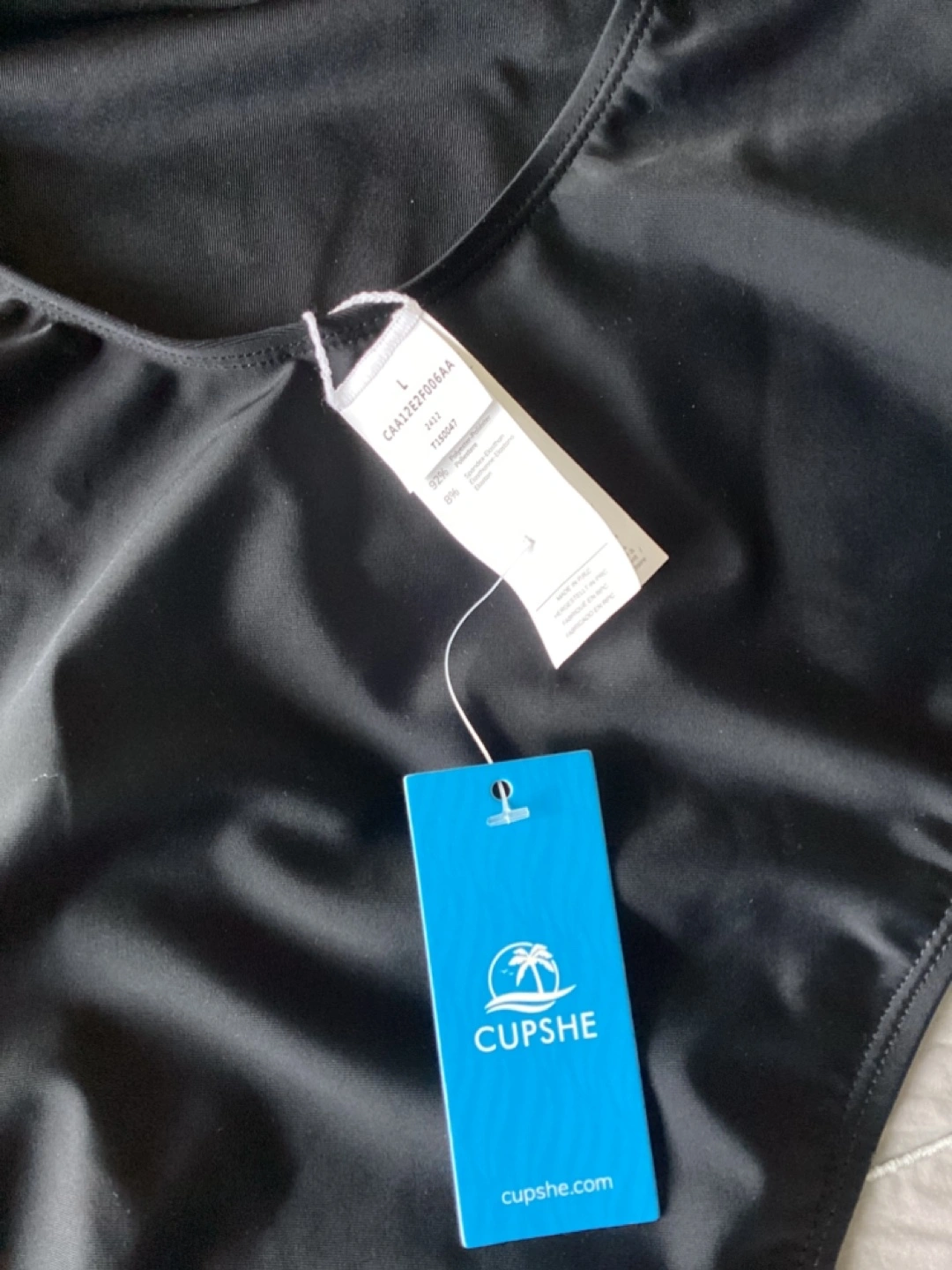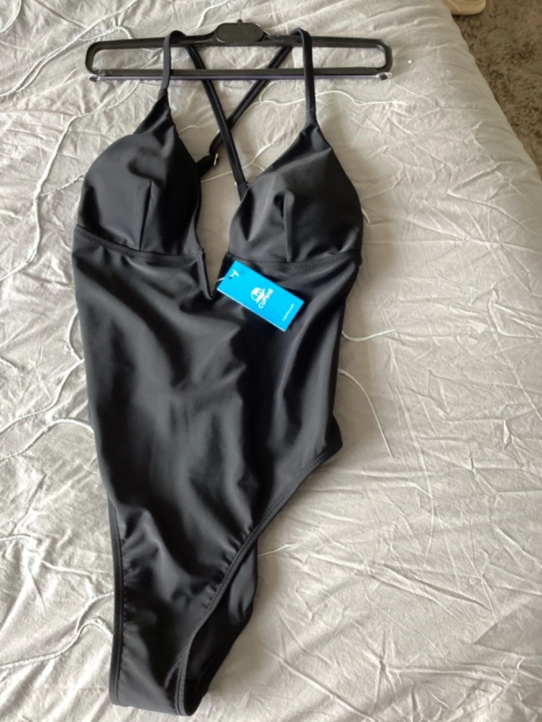 Brand new, black, size large. Deep V-neck, crisscross back. Adjustable straps. One-piece swimsuit.