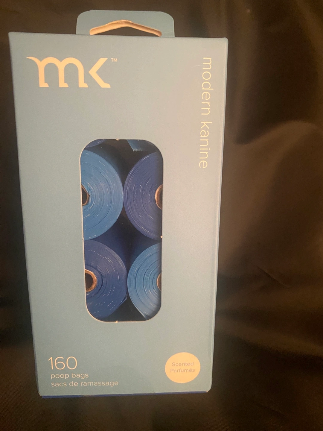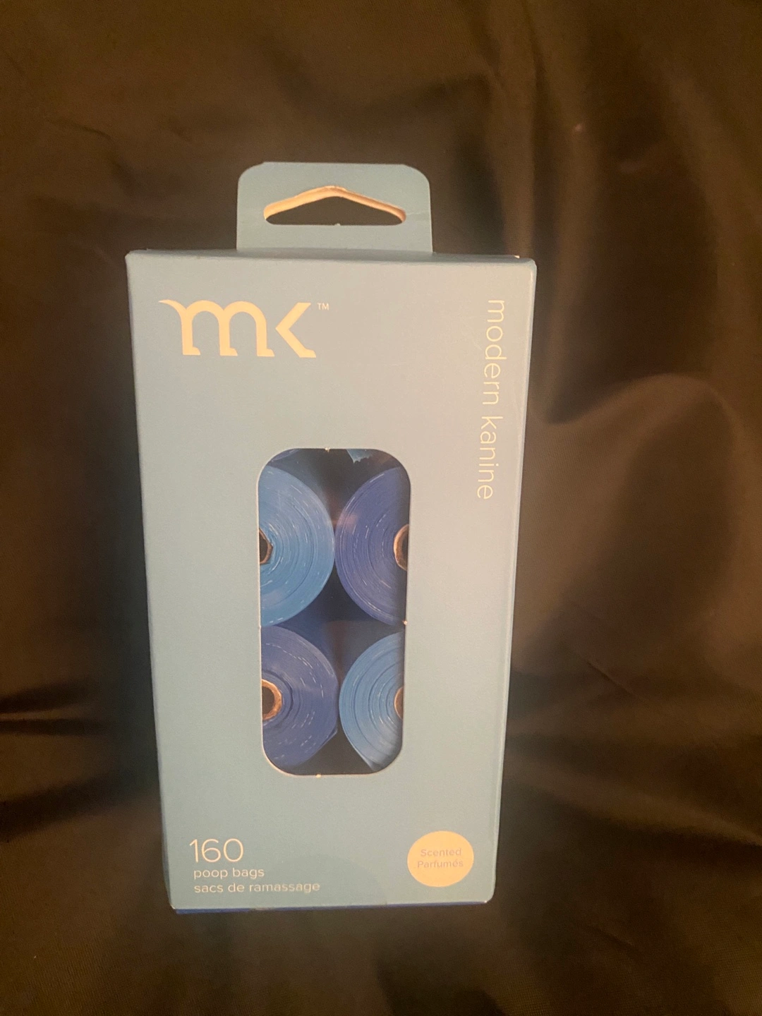 160 scented poop bags. Blue bags. Comes in a box with eight rolls. Conveniently sized for standard dispensers.