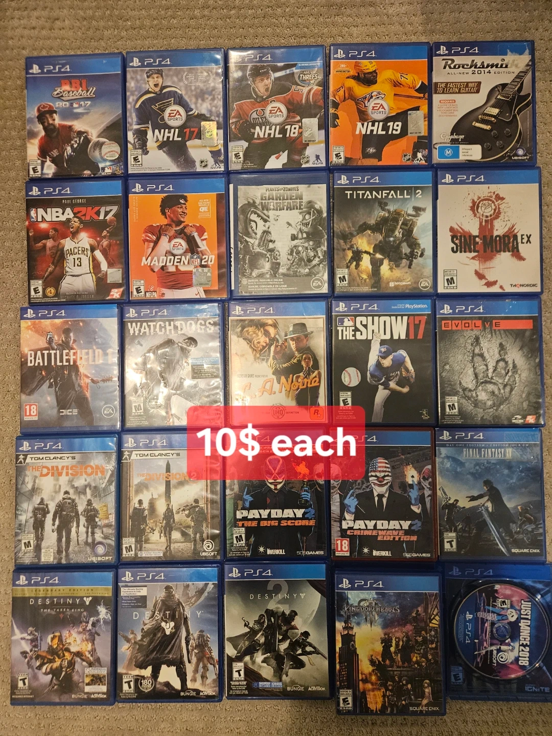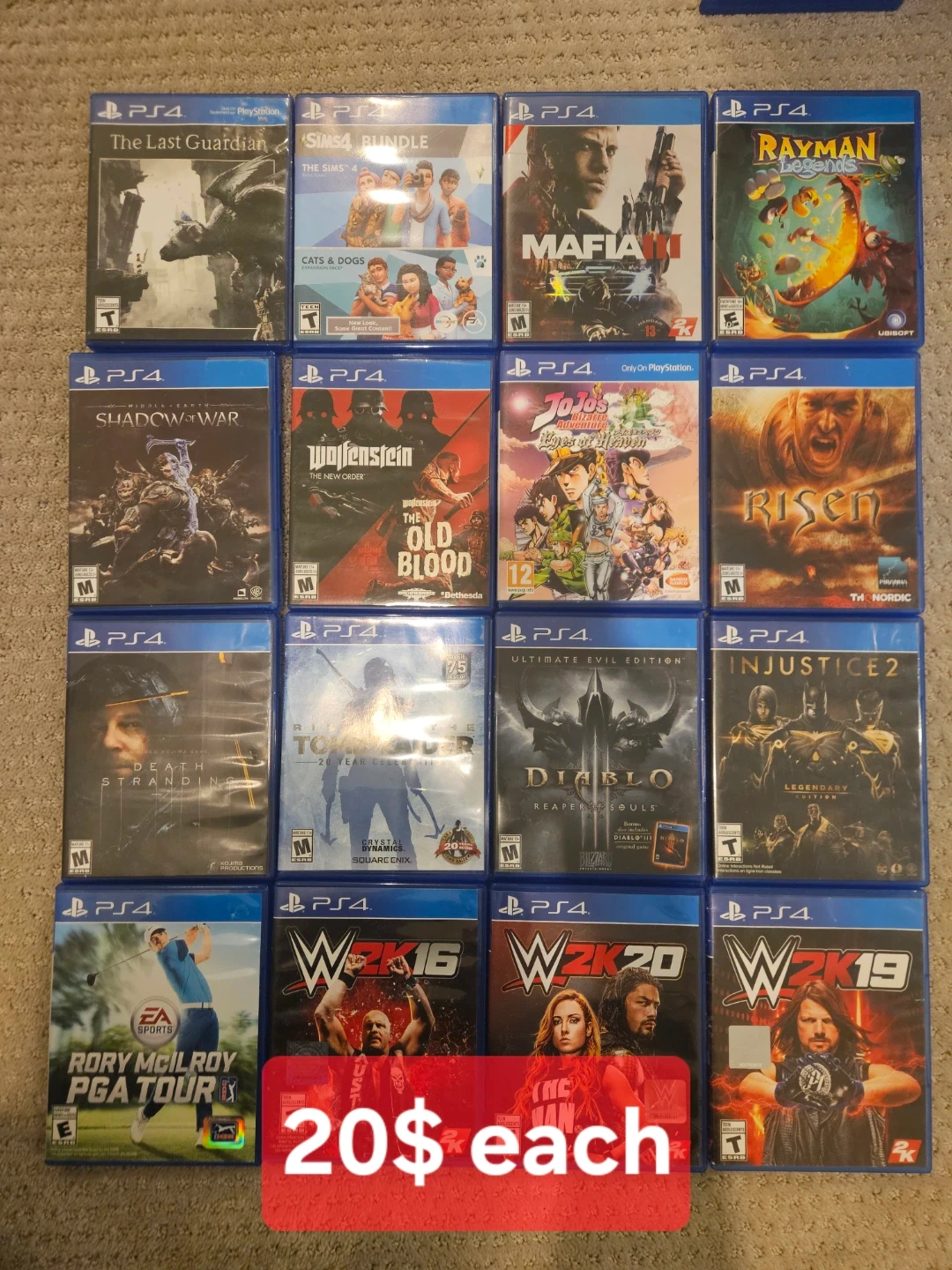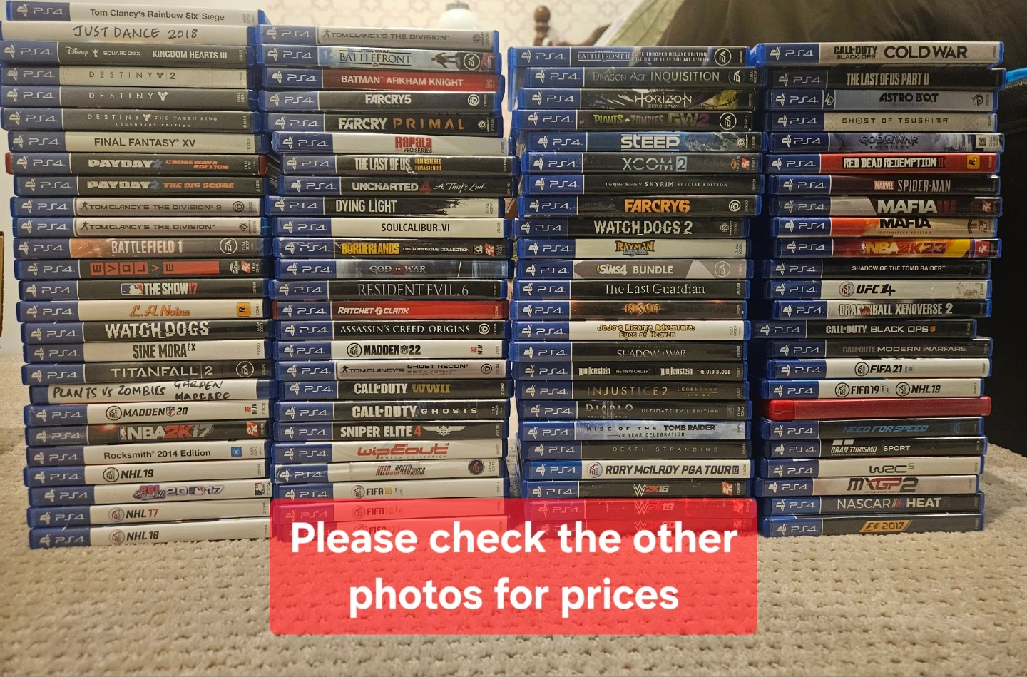 ๐Ÿ“€ Selling a large collection of 100+ PlayStation 4 games โ€” great condition, tested & ready to play! โญ All genres included: โœ”๏ธ Action / Adventure โœ”๏ธ Sports (FIFA, NBA, etc.) โœ”๏ธ Racing โœ”๏ธ RPG โœ”๏ธ Shooters โœ”๏ธ Family & Kids ๐Ÿ“Œ Highlights & Offer: โ€ข Special Offer: Buy 3 games and get one $10 game free! โ€ข Individual games available as well ๐Ÿ“Location: Panorama Hills NW
