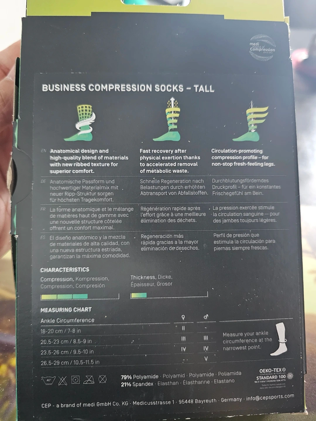 CEP Business Compression Socks for men. Anatomical design and high-quality blend of materials with new ribbed texture. Perfect for traveling, sports, offering fast recovery and circulation promotion. Made in Germany.