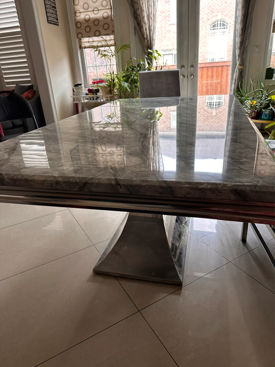 Marble Dining Table with Chrome Base
