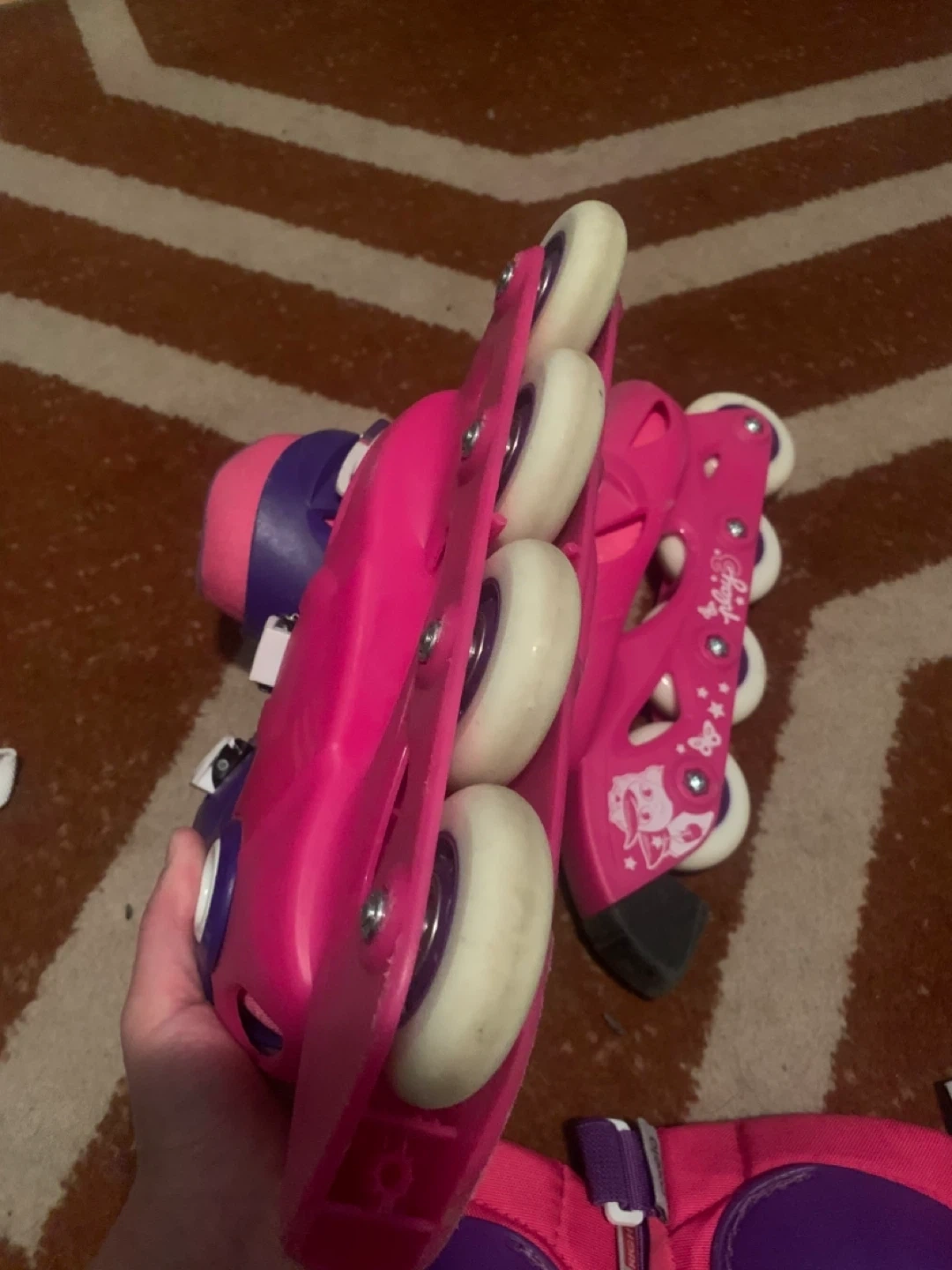 Oxelo Pink & Purple Roller Skates with Protective Gear