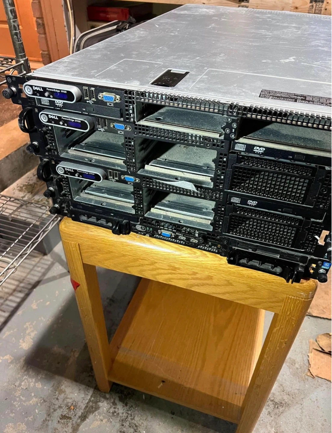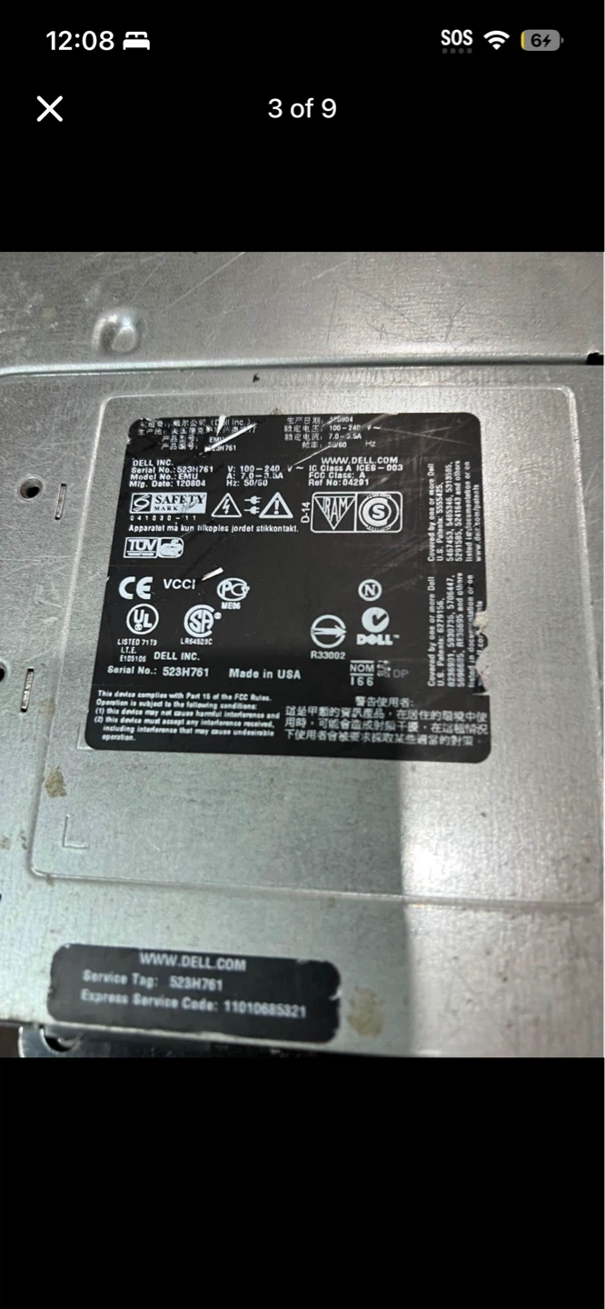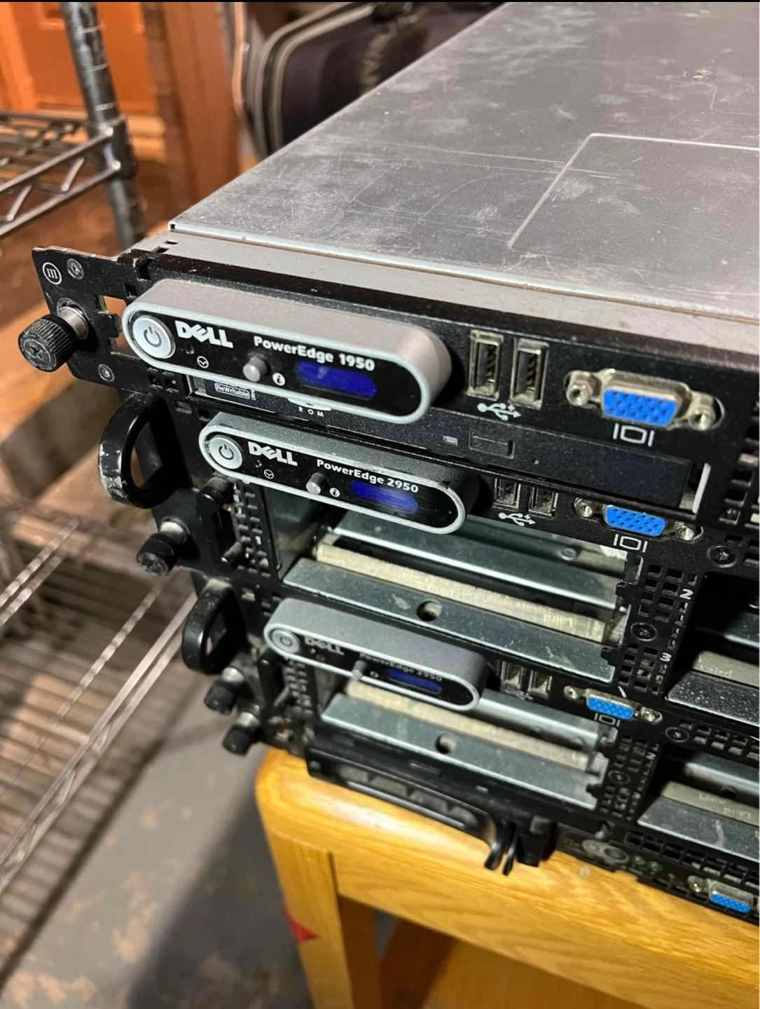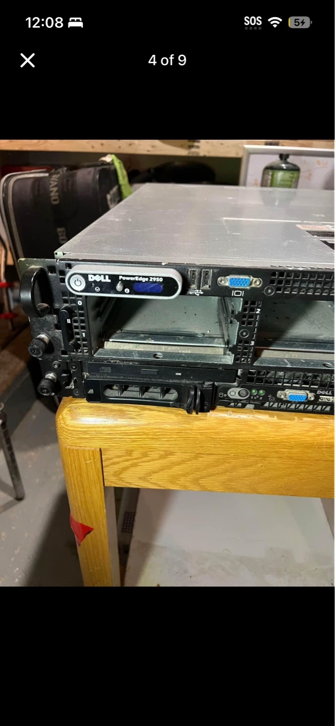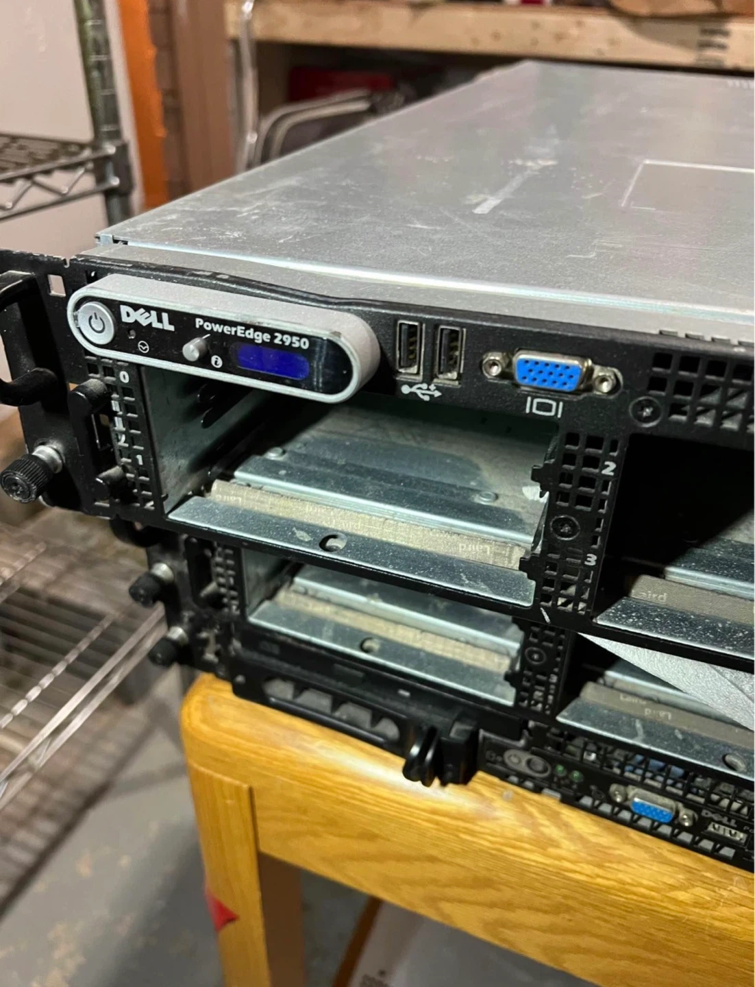 Dell PowerEdge 2950 rack server. This unit appears to be a 1U server. It has a front panel display and USB ports.