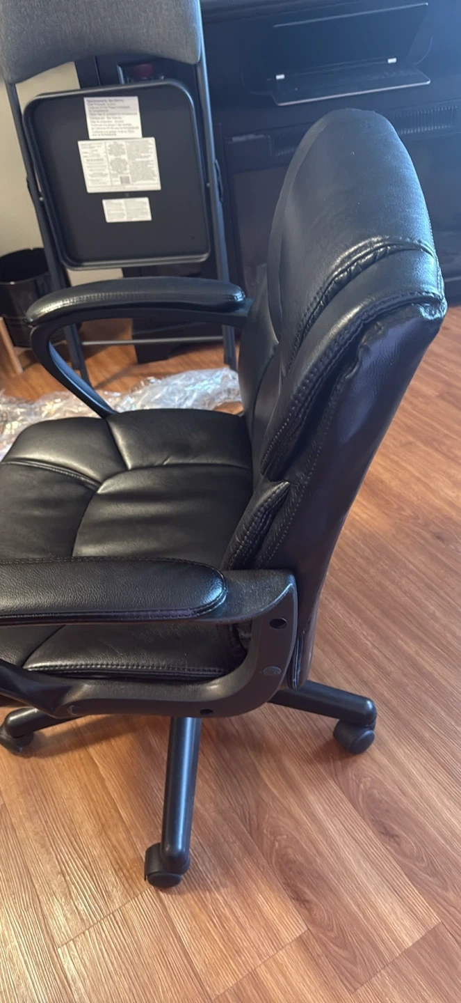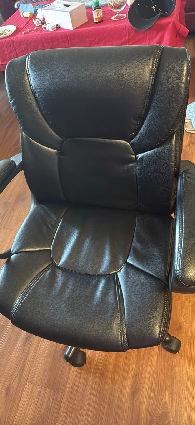 Selling a comfy black leather office chair! It's in good condition and ready for a new home office setup. Perfect for long hours of work or gaming