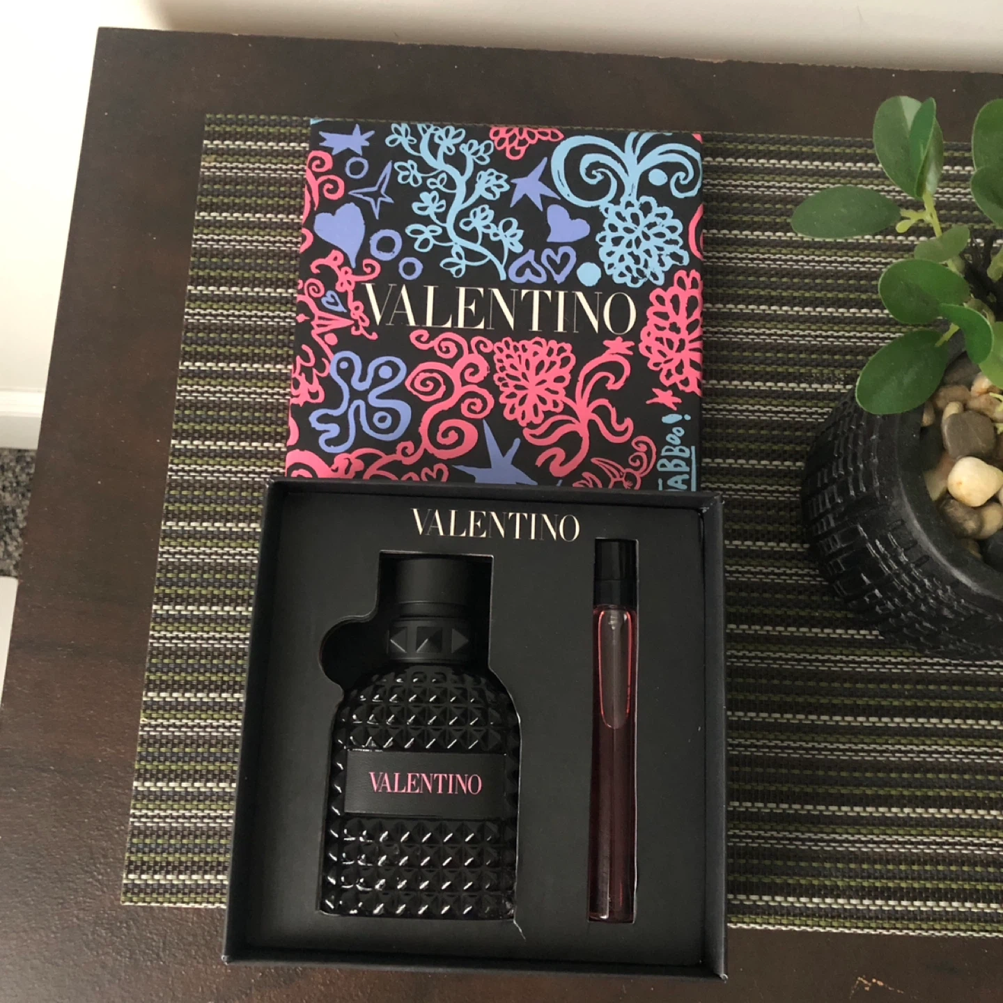 Valentino Donna Born In Roma Eau de Parfum gift set. Includes a large bottle and a travel spray. It's a captivating scent perfect for any occasion!