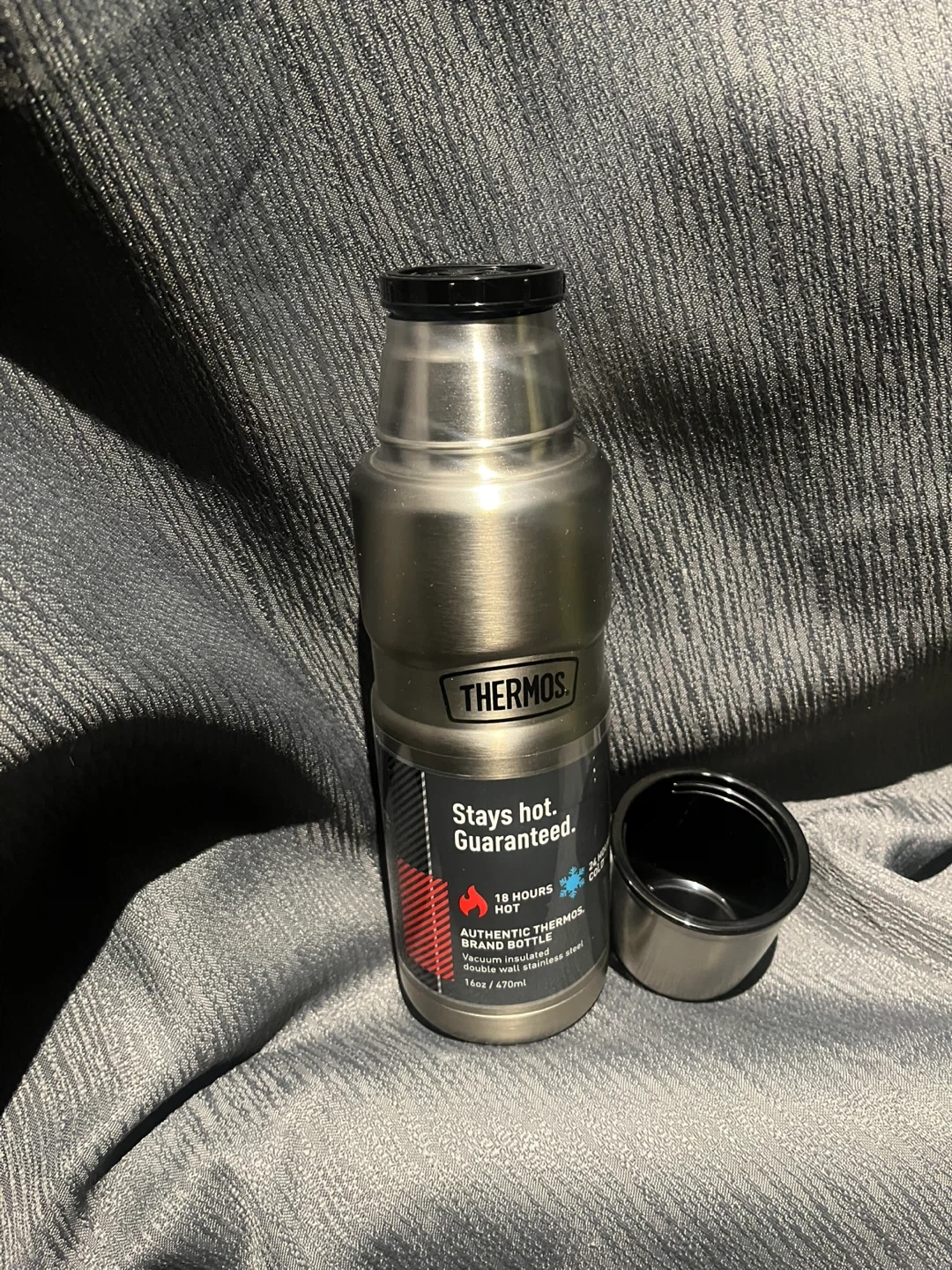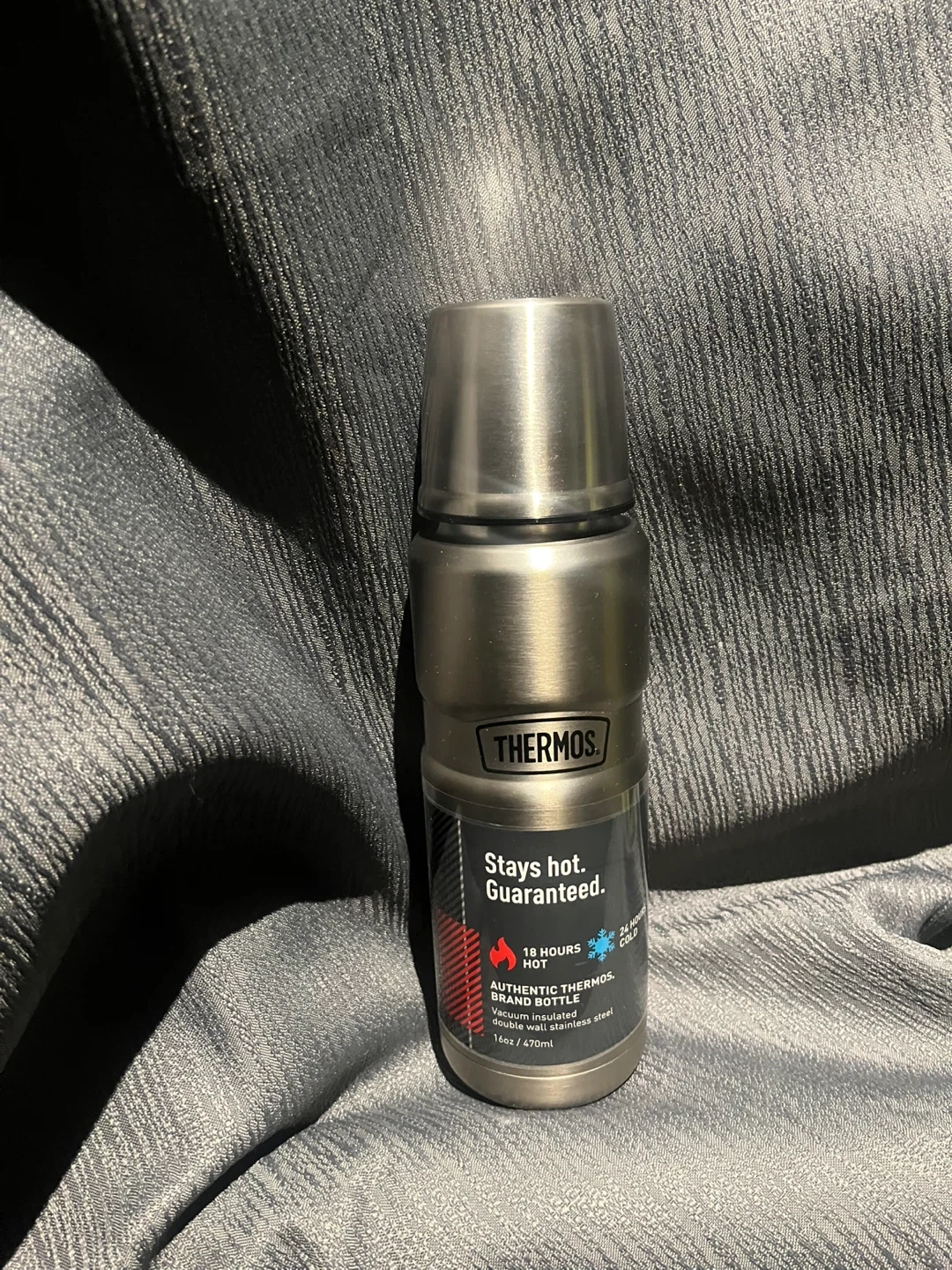 This authentic Thermos flask stays hot for 18 hours or cold for 24 hours. It's made of durable stainless steel and has a 16oz / 470ml capacity. This flask is perfect for keeping your beverages at the desired temperature throughout the day.