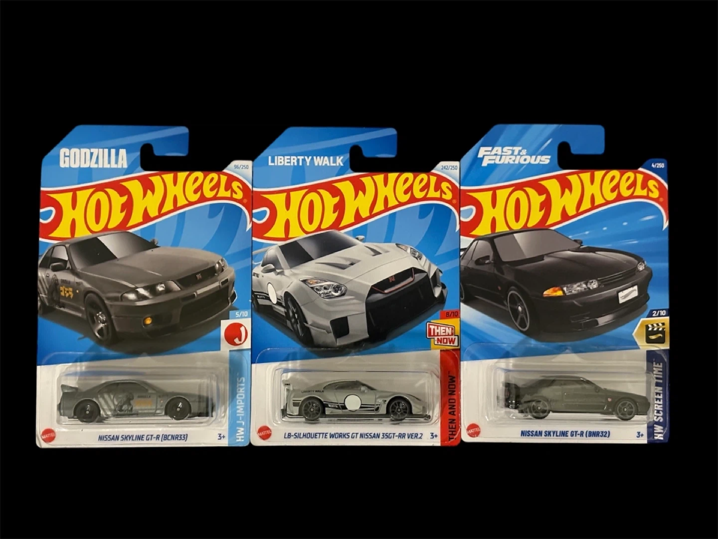 Three Hot Wheels Nissan Skyline GT-R cars: